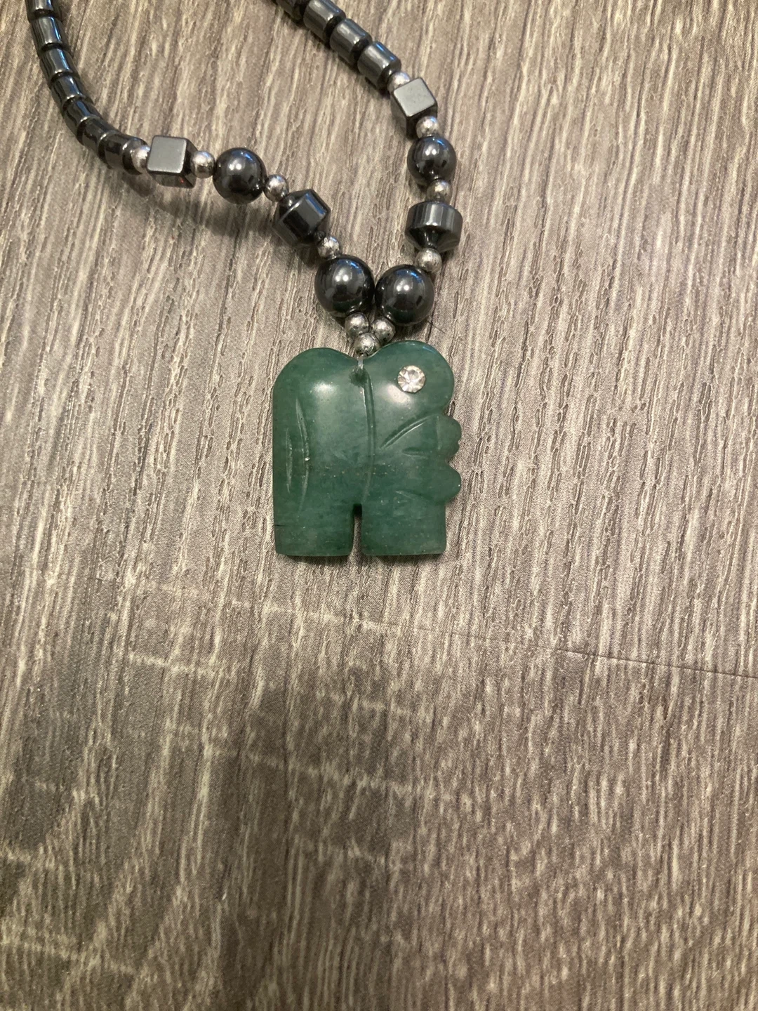 Green Elephant Jade Pendant Necklace with Hematite Beads