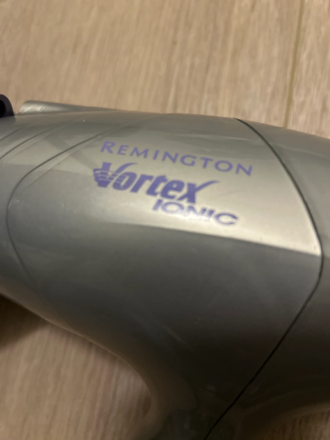 This Remington Vortex Ionic hair dryer comes with a diffuser attachment. It's a silver and purple colour. The dryer uses ionic technology for styling.