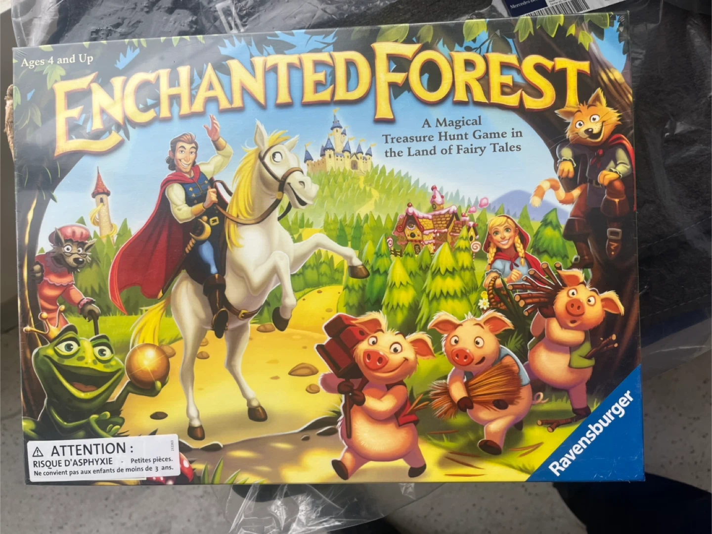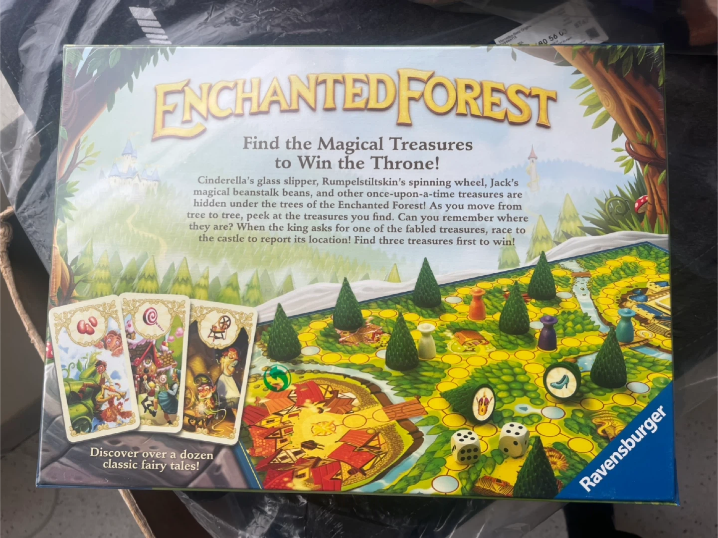 98Selling a new sealed Enchanted Forest board game by Ravensburger! It's a magical treasure hunt game set in the land of fairy tales, perfect for ages 4 and up. Discover over a dozen classic fairy tales as you play. Find the magical treasures to win the throne!
