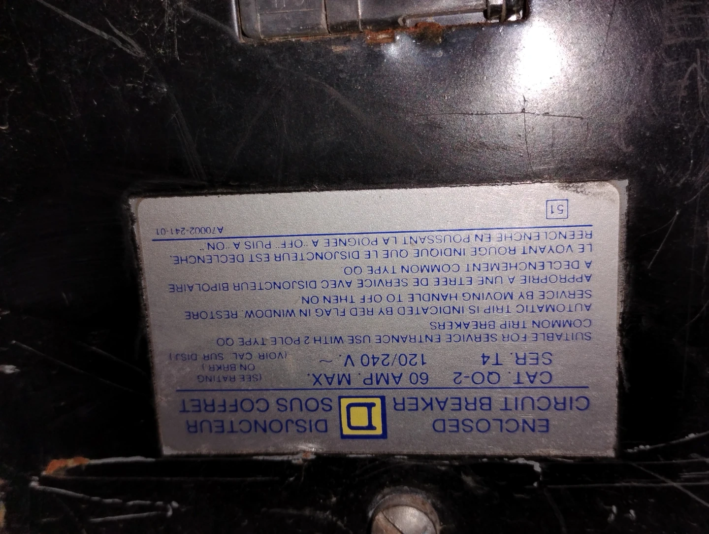 5Enclosed Circuit Breaker by Square D. CAT. QO-2 60 AMP. MAX 120/240 V~