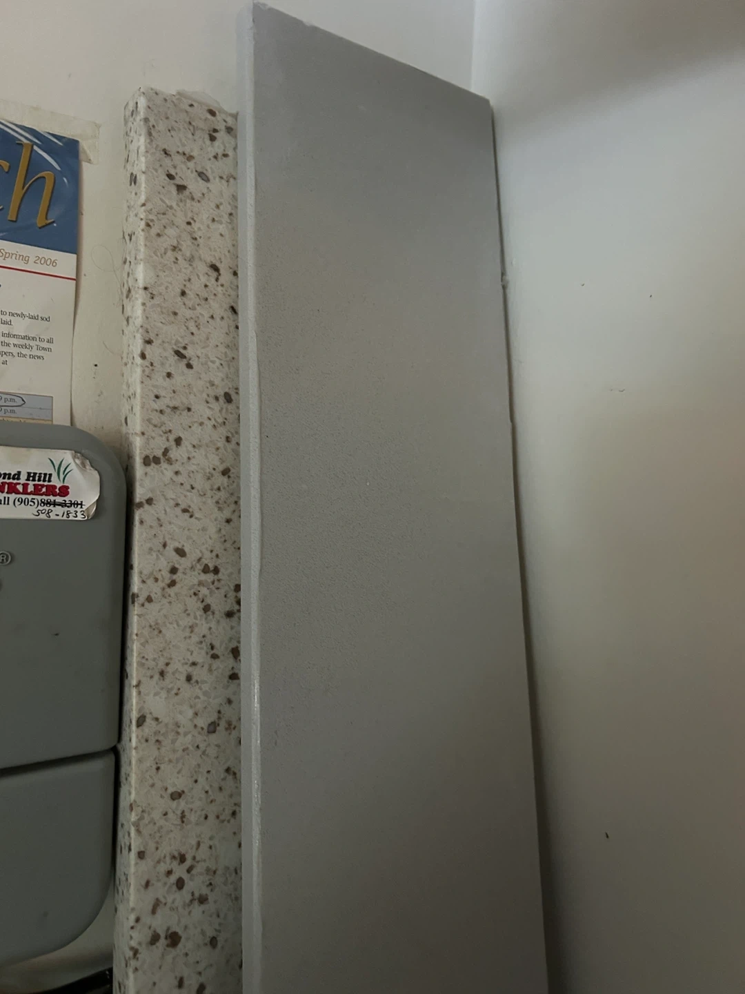 133Kitchen or bathroom end panel. common component used to finish the base of kitchen cabinets or bathrooms. 2 pieces available. One grey the other is a granite. Approx 17” x 93” Retails $175 per piece or more
