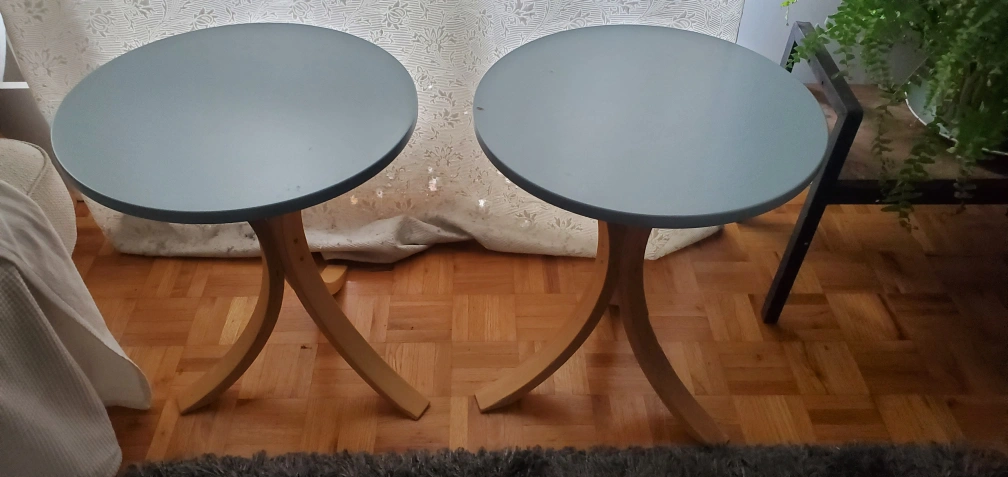 Nearest intersection Bloor and Lansdowne in Toronto. Two tables, put them next to your bed, your couch, in the corner of the dining room with a plant or lamp, whatever you want. See close ups for surface damage. Delivery available within reason.