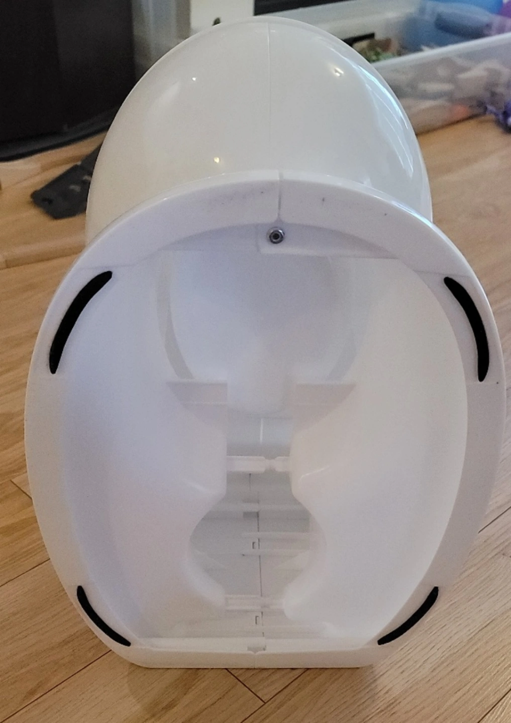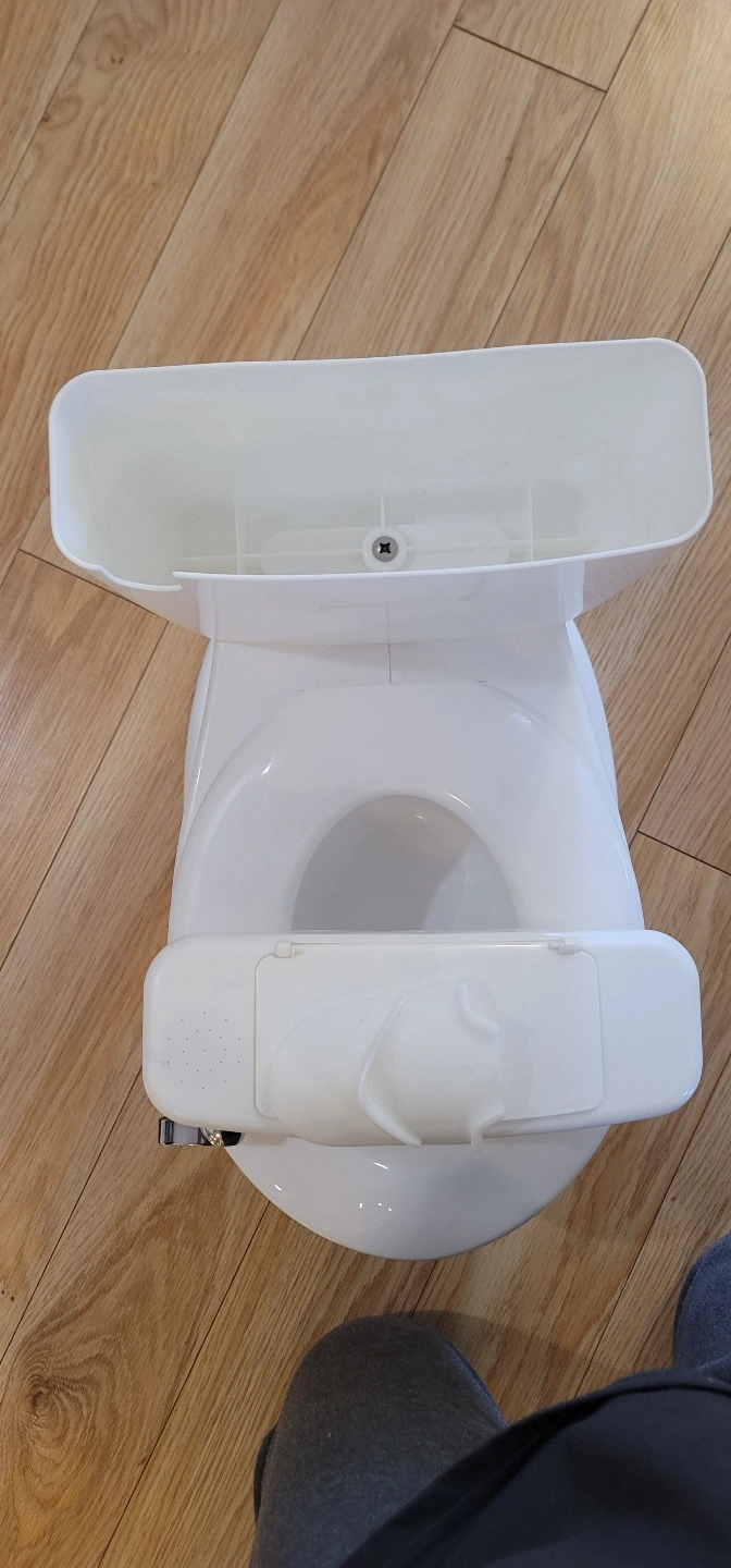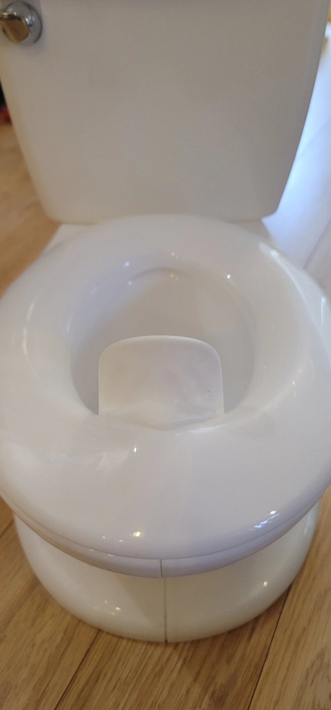 summer white plastic potty. Features a removable bowl for easy cleaning. Designed to look like a real toilet. Great for potty training.