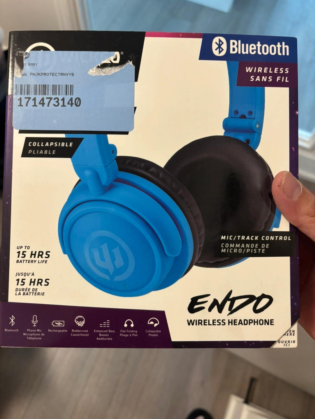 126Wireless headphones. Bluetooth enabled. Up to 15 hours battery life. Collapsible and foldable design. Includes microphone and track controls. Rubberized earcups.