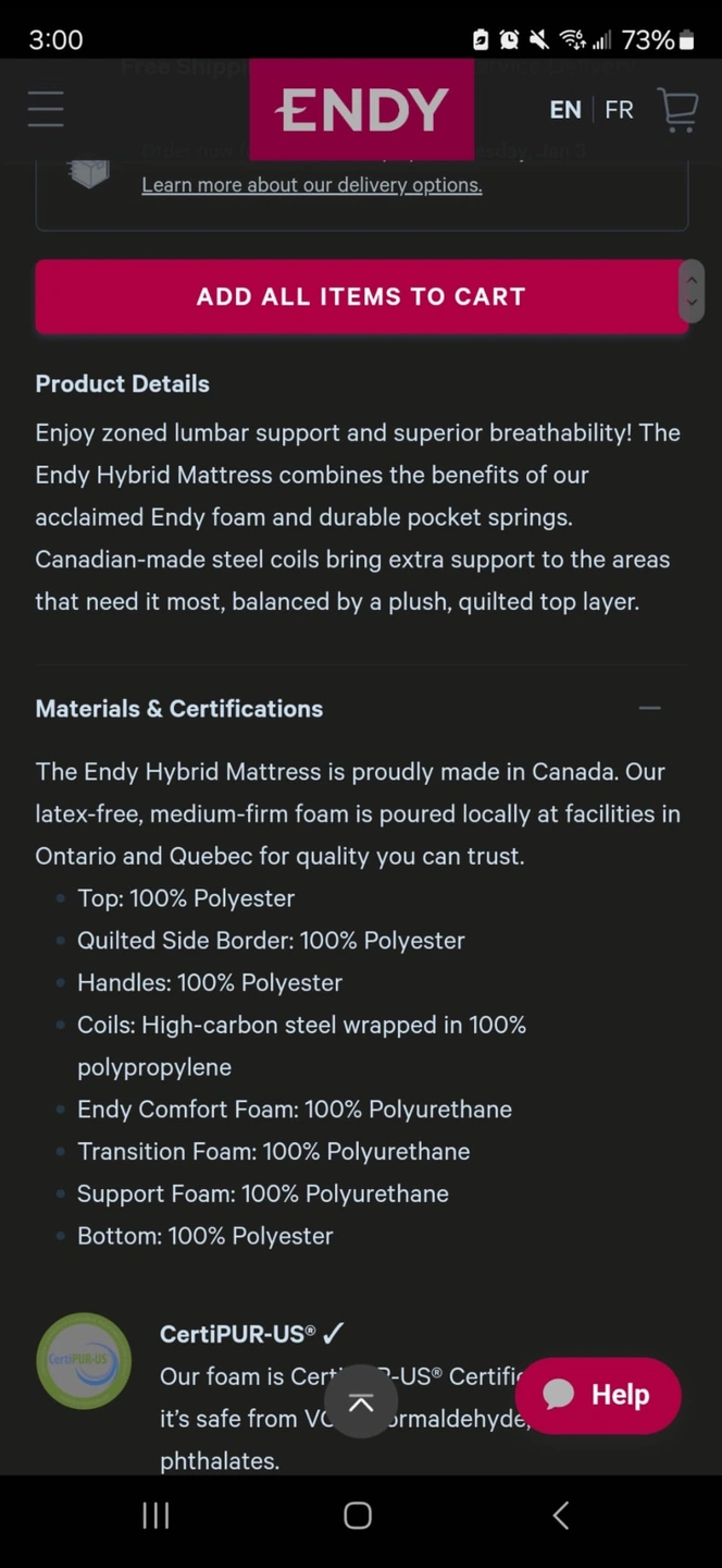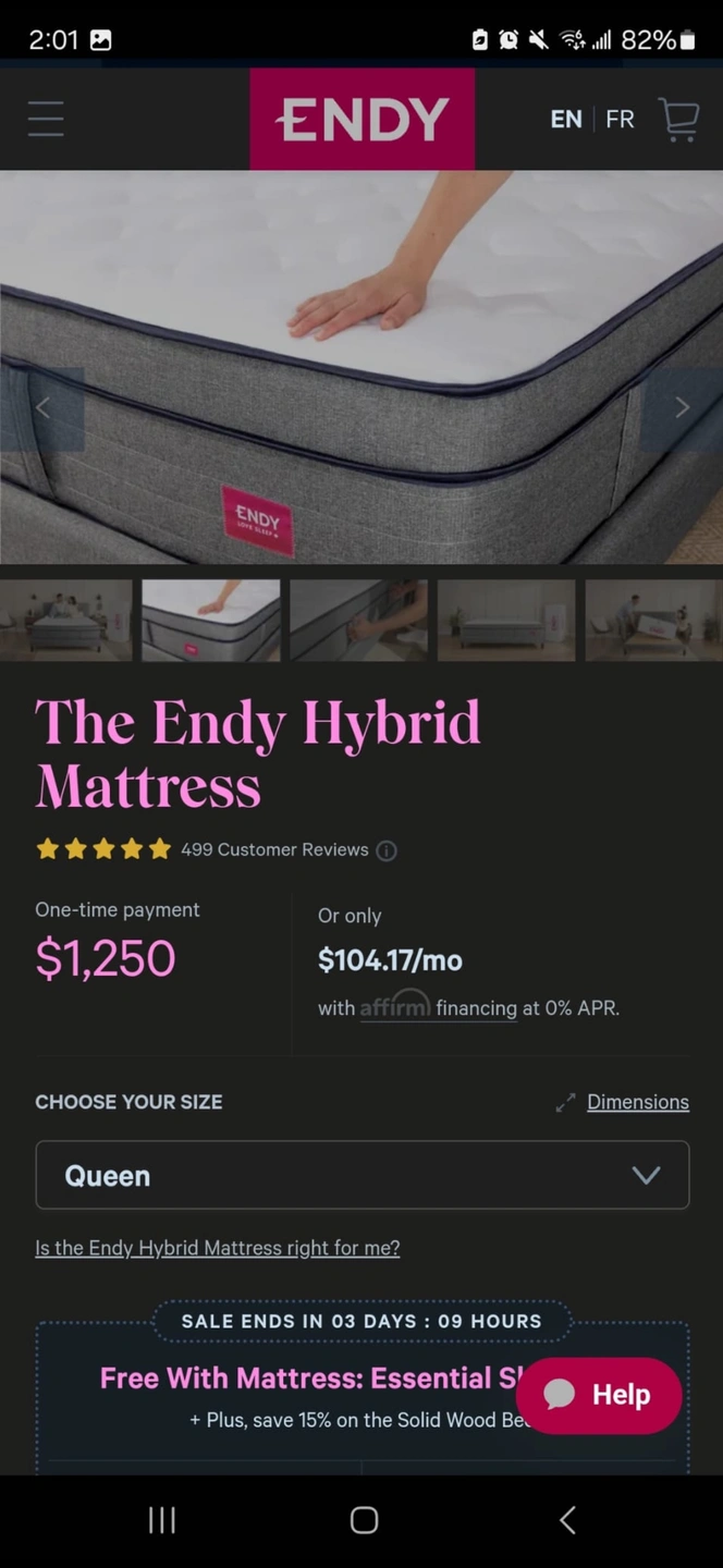 66Endy Hybrid Mattress combines the benefits of acclaimed Endy foam and durable pocket springs. (Taken from website) Brand new has not been removed from vacuum seal accommodates easier transport.
