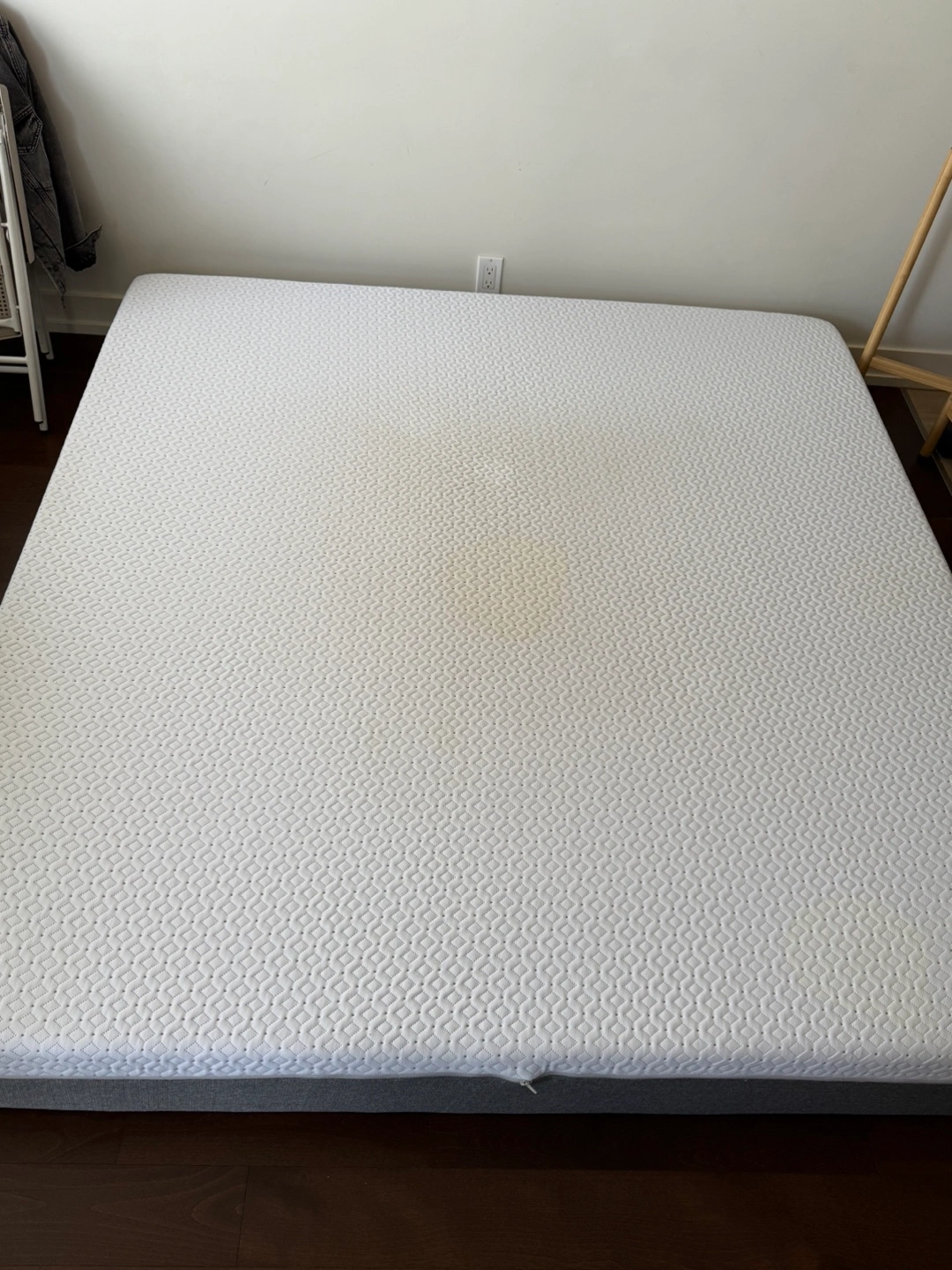 ‼️Best deal for best quality mattress‼️ King-size Endy mattress with king size fitted bed sheets, 2 king size pillows & pillow covers and mattress protector all included. It is in great condition, just a small light stain which is from moving & cleaning. It will be cleaned before selling. Serious inquiries only. Price negotiable but be reasonable.