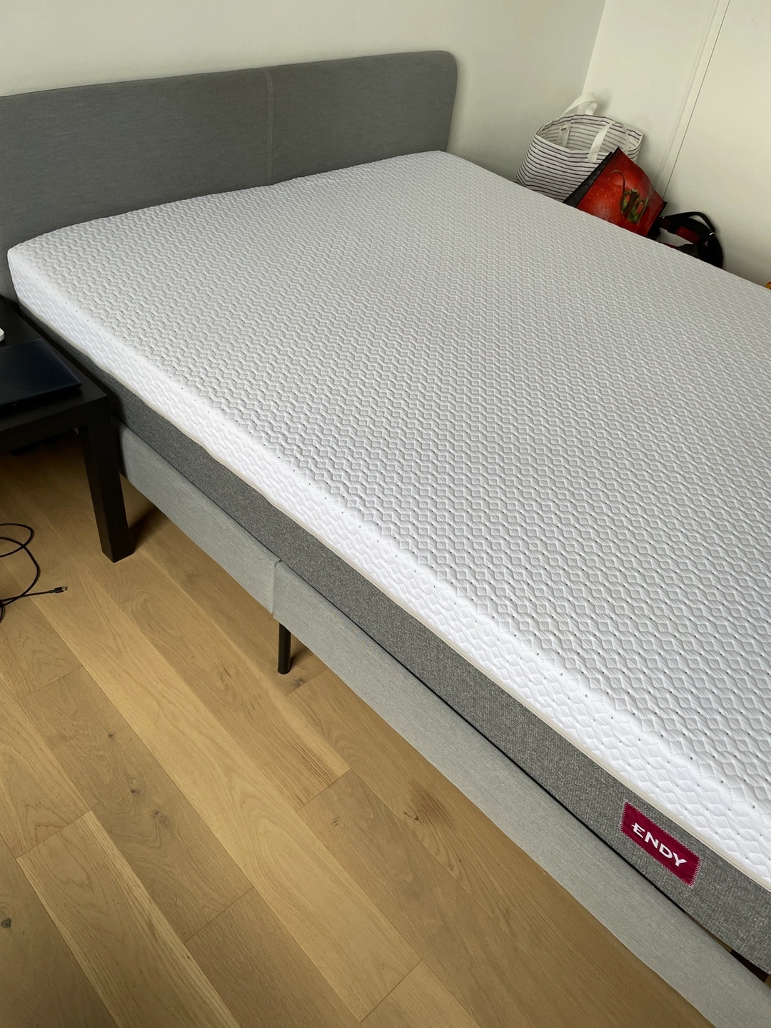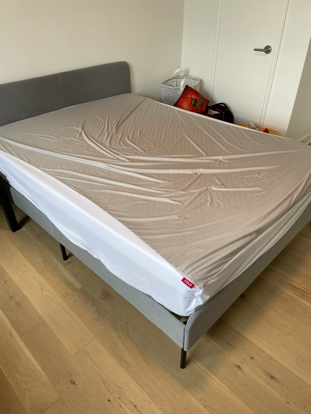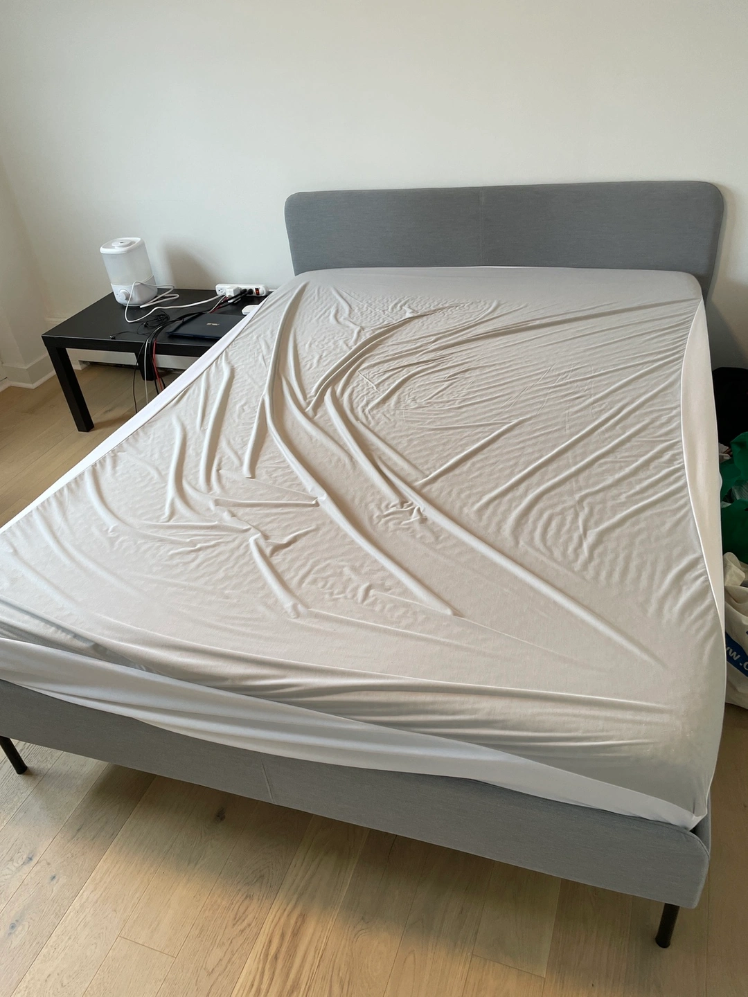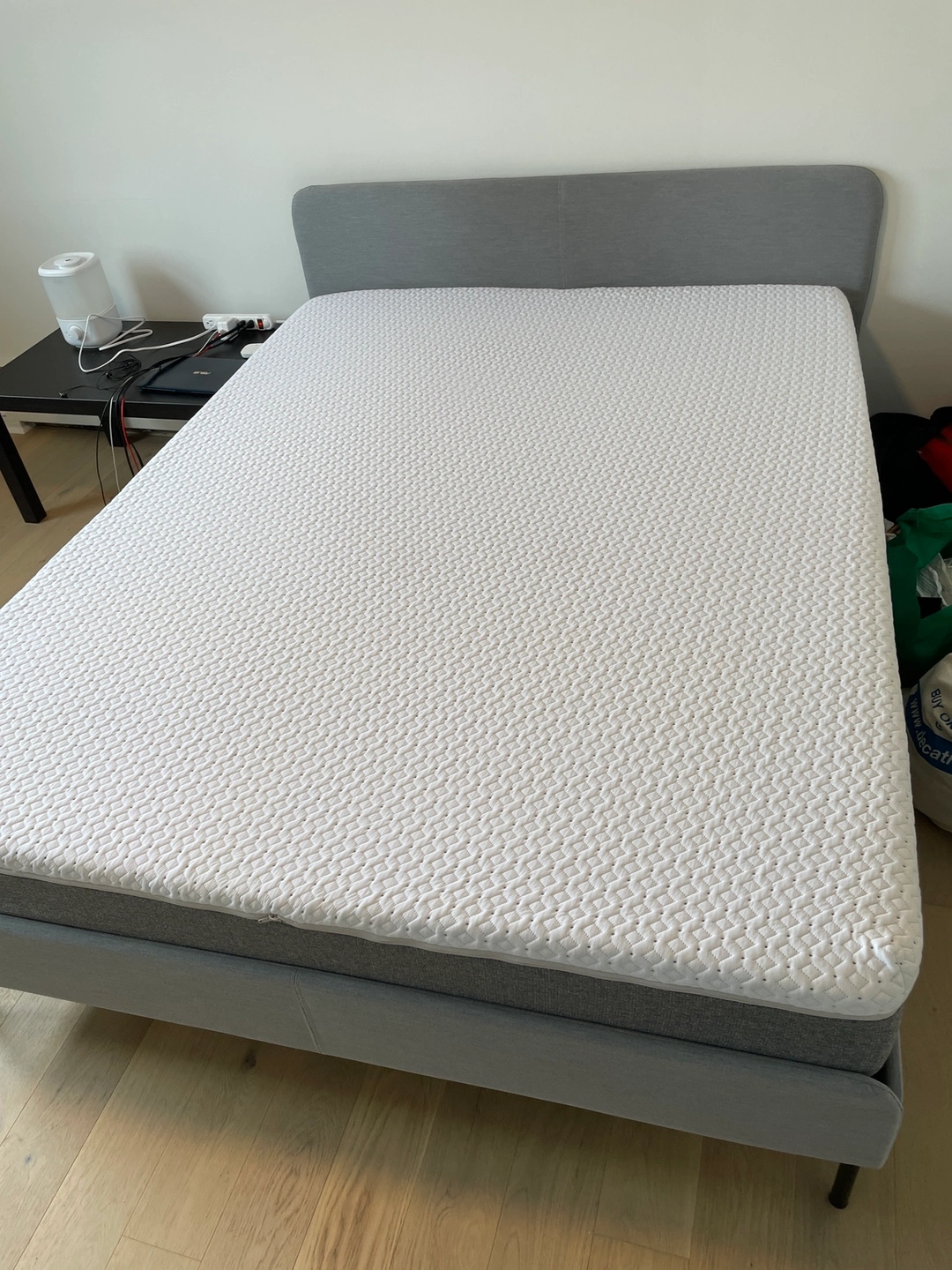 48Queen bed + mattress About a year old. Always used with mattress protector. No smoking and no pets household. Pickup only. Reason for selling moving. https://www.ikea.com/ca/en/p/slattum-upholstered-bed-frame-vissle-dark-gray-70571256/ https://www.endy.com/products/endy-mattress?size=Queen