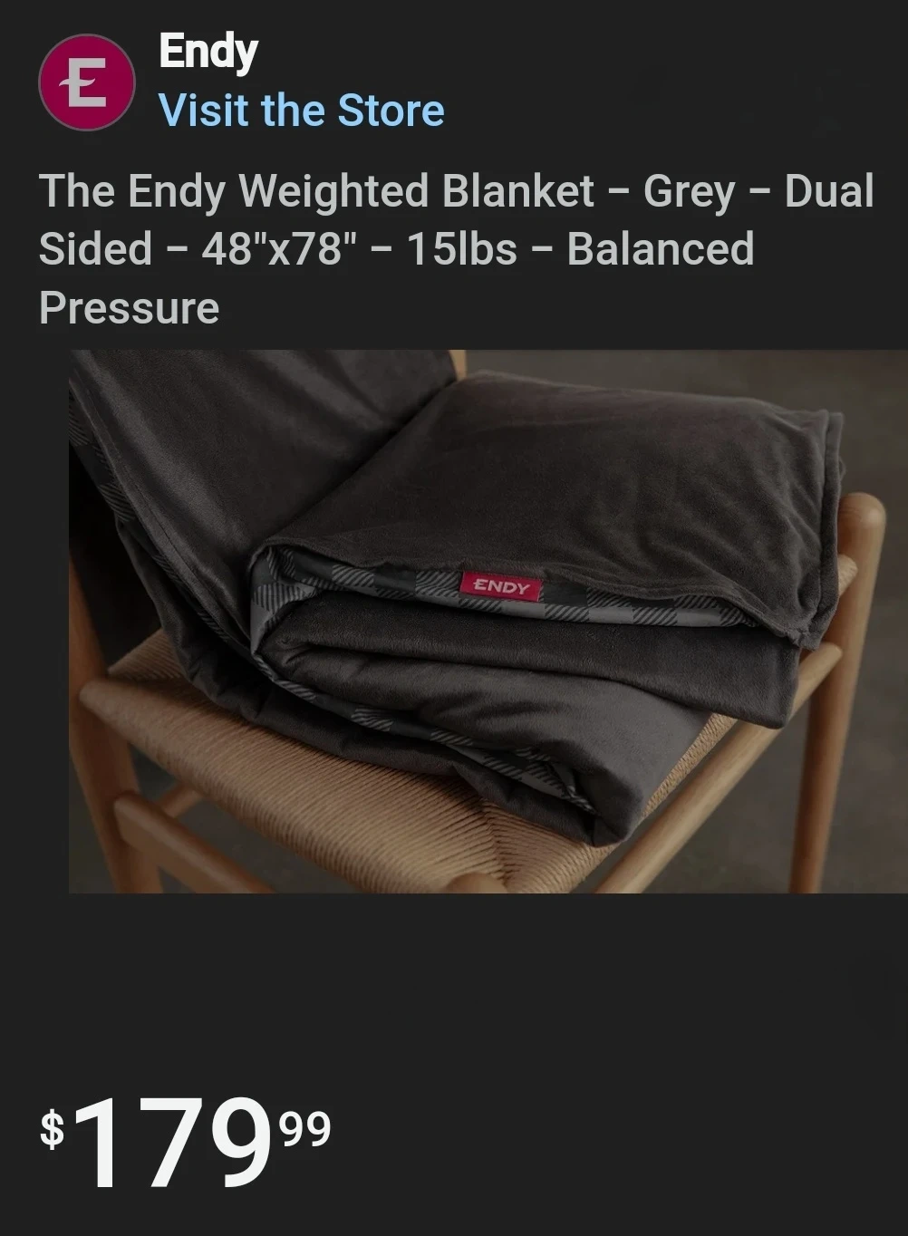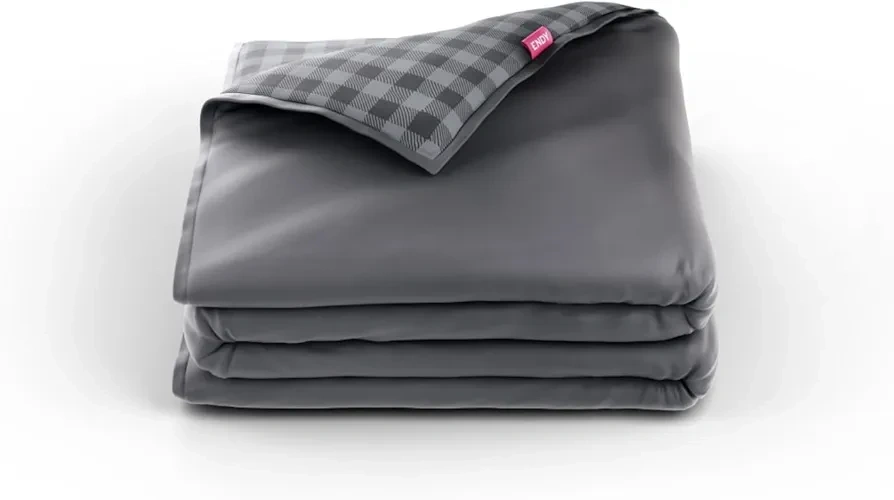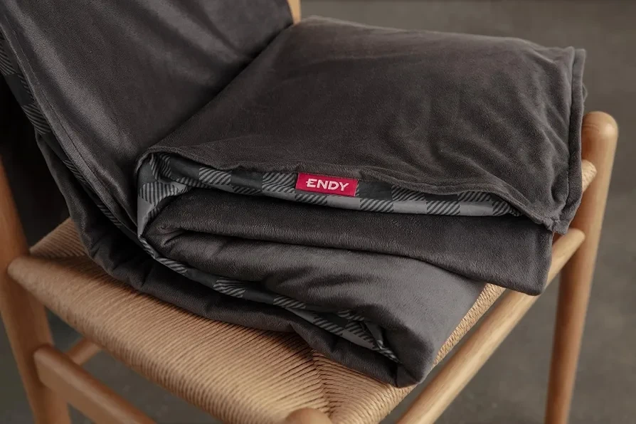 5Selling an Endy weighted blanket in grey. It's in great condition and ready to help someone get a good night's sleep! The blanket features a checkered pattern on one side. It is weighted at Lbs and good help for people with anxiety.