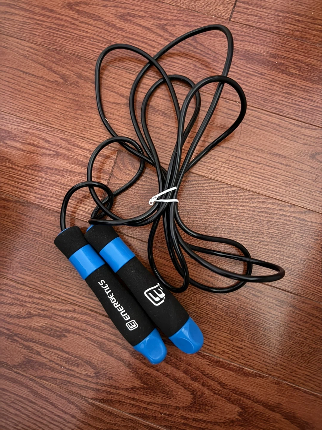 535Energetics jump rope with black cable and weighted handles. Great for cardio!