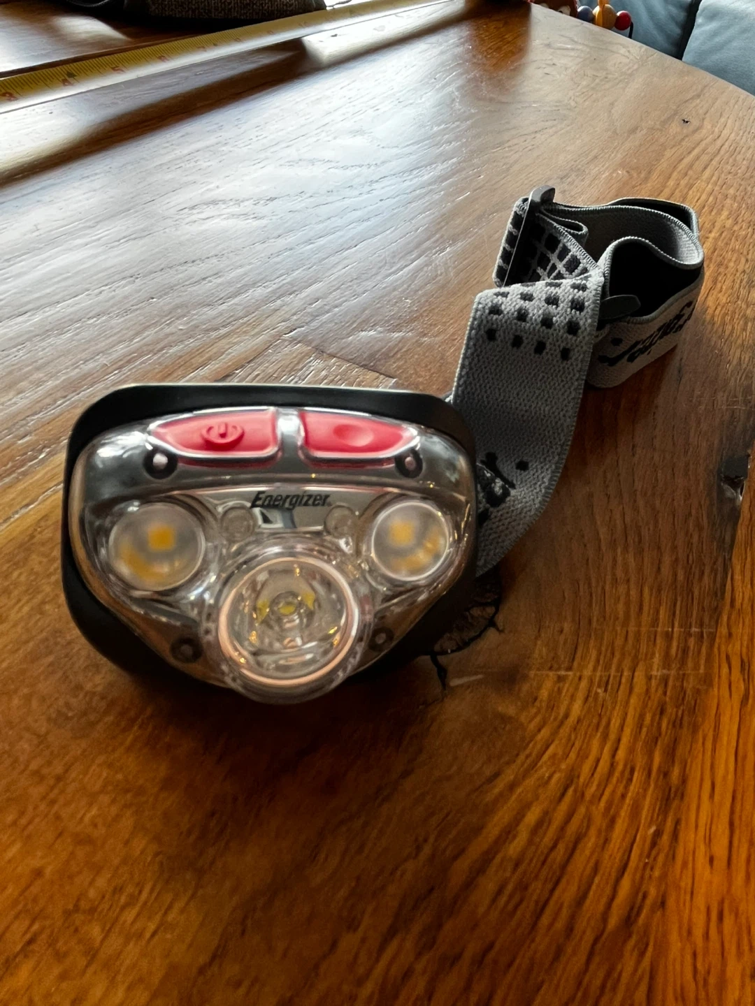 Headlamp with 2 colour settings, adjustable strap and batteries included Pickup only at corner of Dan Leckie Way and Queens Quay West