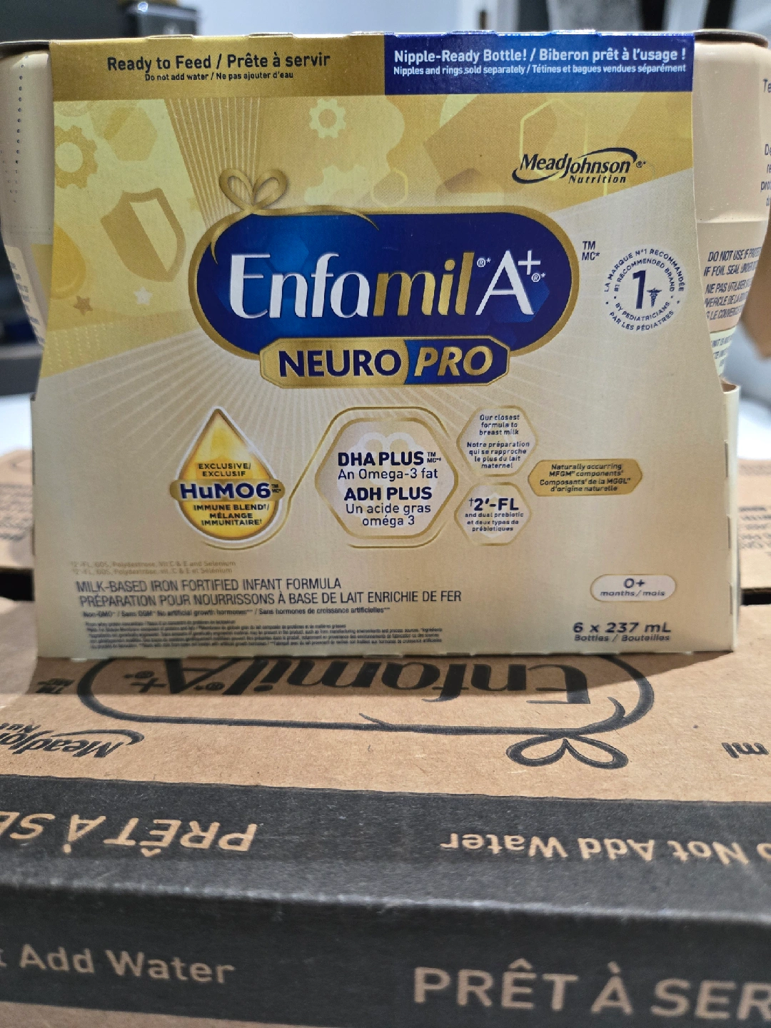577Selling a box of Enfamil A+ NeuroPro Ready to Feed formula. Box contains 6 bottles, 237ml each. Great for newborns and up! ✨️Smoke free ✨️Pet free clean home ✨️Best for newborns, same recommended by hospitals too. ✨️Better to keep this one box, in your hospital bag ✨️Bestie for newmoms who have insufficient breastmilk. ✨️Travel friendly (No headaches of water storing, consistency checking. Can be used as is.) ✨️Easy to store and use.