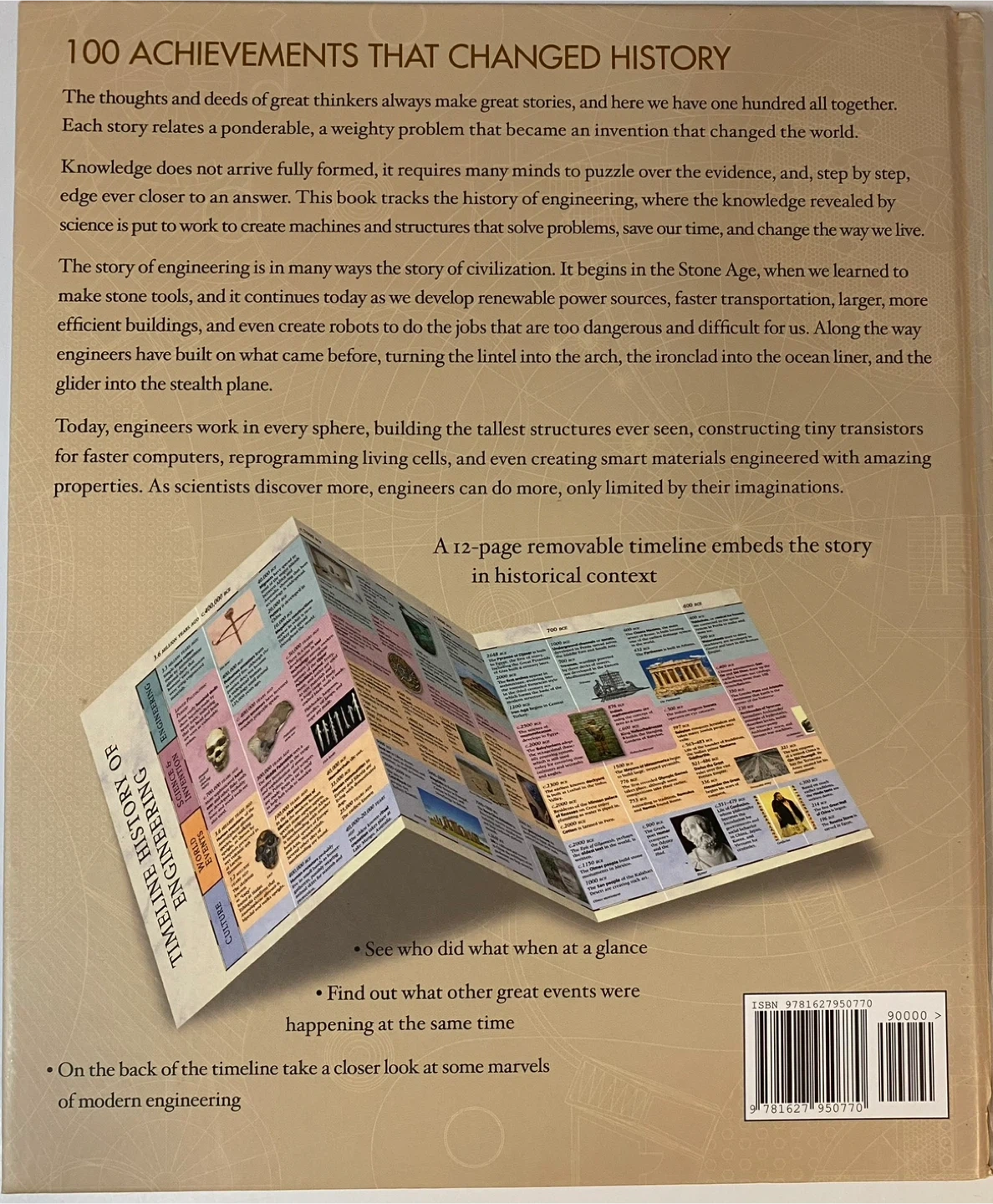 Selling "Engineering: An Illustrated History from Ancient Craft to Modern Technology" book. It includes a foldout timeline with over 6,000 milestone facts. Explore 100 achievements that changed history with this ponderable read!