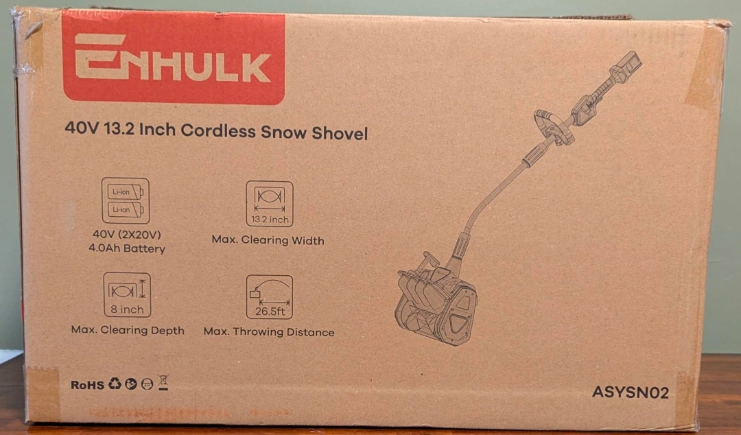 39I'm selling an Enhulk 40V 13.2 Inch Cordless Snow Shovel! It features a 13.2-inch clearing width max and 8-inch clearing depth max. The max throwing distance is 26.5ft. It also comes with a 40V (2x20V) 4.0Ah battery. The original price was $329.99. Box included!