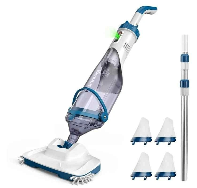 ENHULK Pool Vacuum for Above Ground Pools, 2025 Upgraded 13.4" Wide Head & Telescopic Pole, 18.5 GPM Suction, 60 Min Runtime, Cordless Handheld Rechargeable Pool Cleaner for Inground Pools