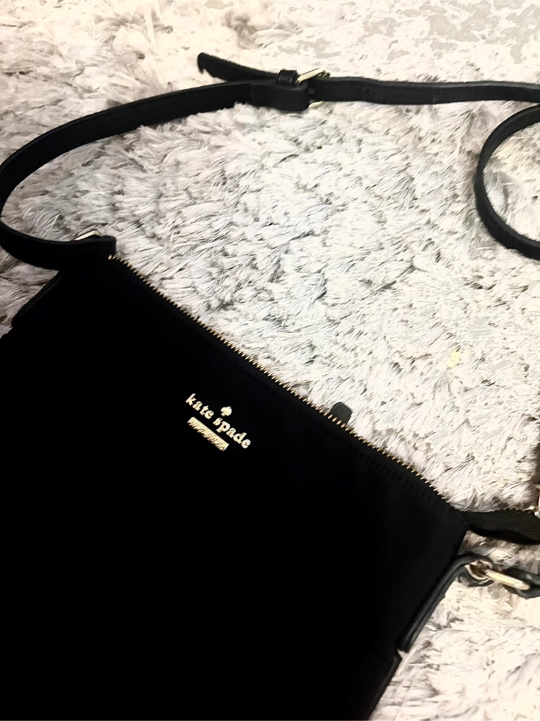 Black nylon crossbody bag by Kate Spade. Features a zippered main compartment and an exterior zippered pocket. strap is adjustable. In great condition!