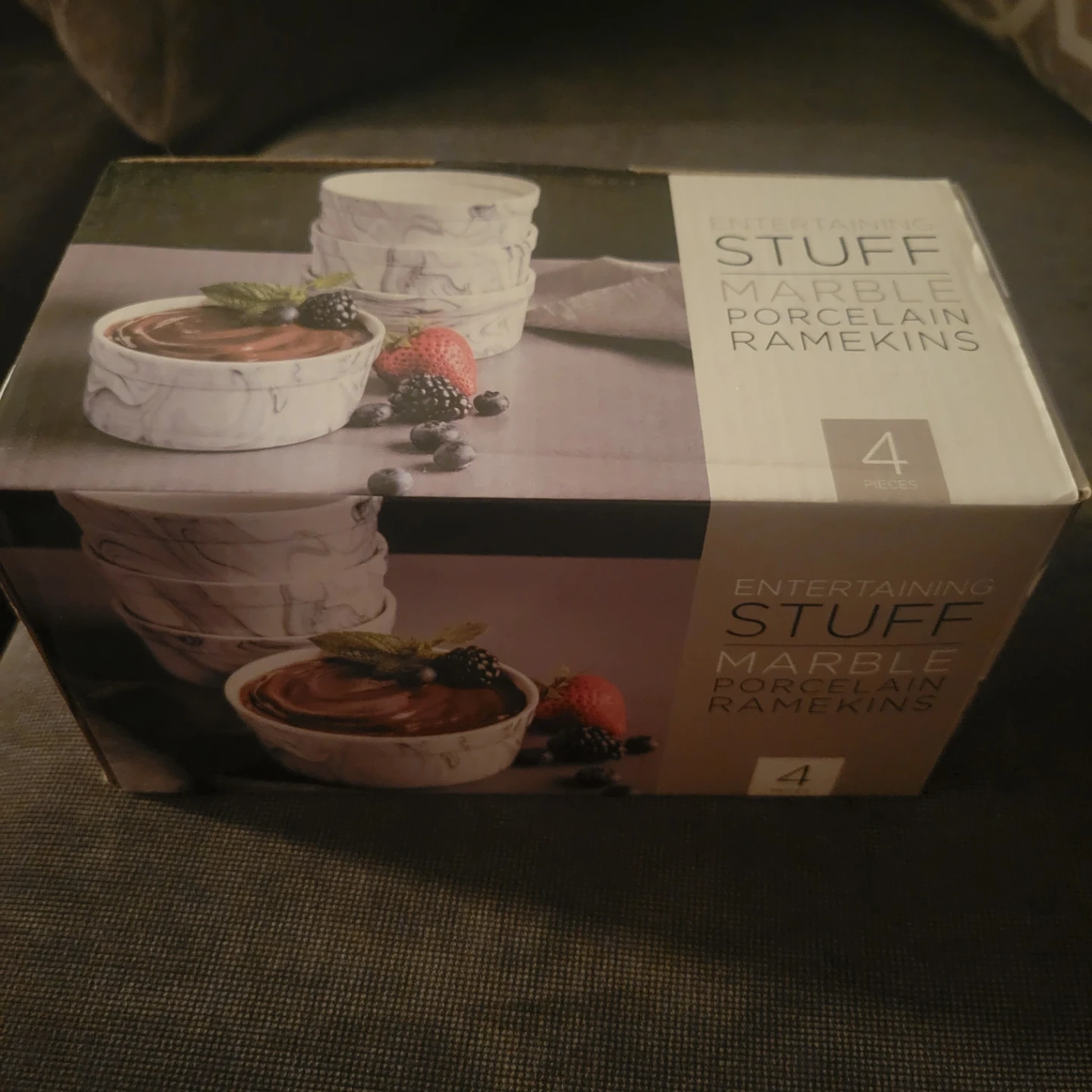 10Selling a set of 4 Entertaining Stuff marble porcelain ramekins! They're brand new and come in the original box, ready to add a touch of elegance to your kitchen or dining experience