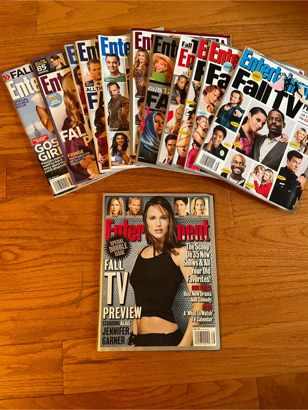 Selling a collection of Entertainment Weekly magazines, all featuring the Fall TV Preview. Great for collectors or anyone interested in TV history! Complete 2008-2018, plus vintage 2002 All in good condition.