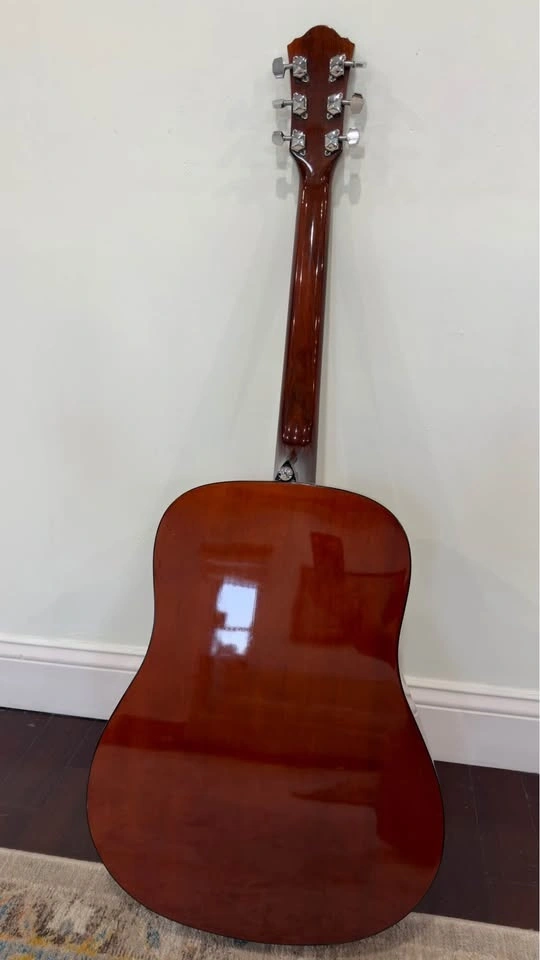 Warm, full-bodied tone from this dreadnought-sized acoustic. Plays beautifully and sounds great.