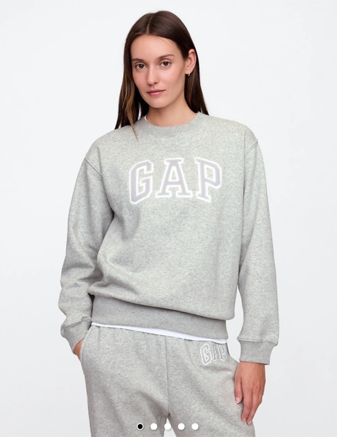 This is a GAP women's crewneck sweatsuit in grey. It features the classic GAP logo across the chest. Made from a soft, comfortable fabric. Perfect for casual wear.