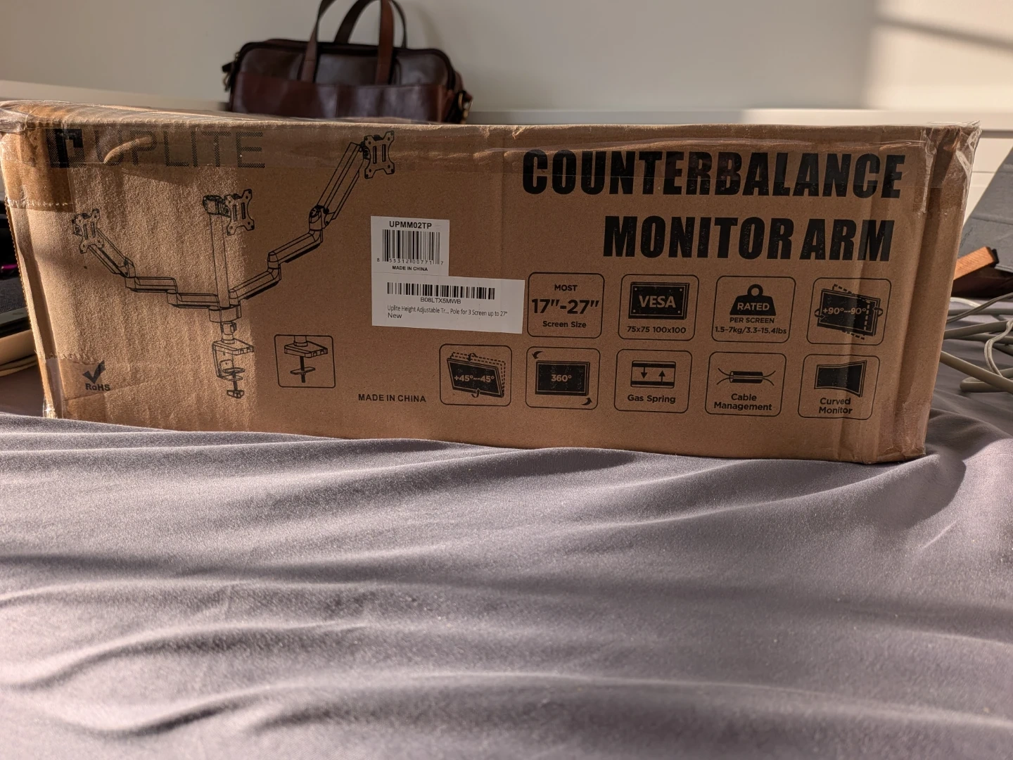 This UPLITE dual monitor arm supports three screens from 17" to 27". It features a gas spring for easy adjustment and gas spring for up to 15.4lbs per screen. It also includes cable management. This arm is suitable for curved monitors.