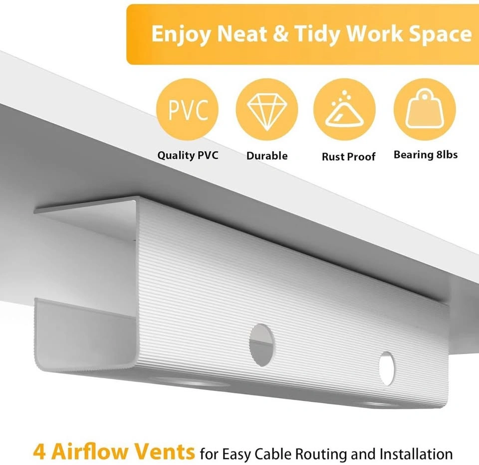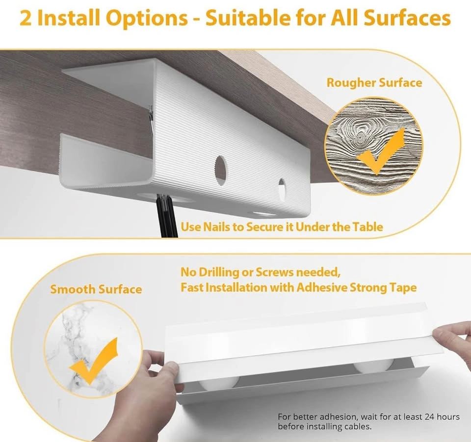 Simple and Easy Installation: Each ZhiYo Cord Tray comes with 1 roll of adhesive tape, and 9 screws and anchors, suitable for all surfaces (smooth or rough). With 4 pre-drilled mounting holes, nail installation is also straightforward. The package includes 2 desk cable trays, 4 cable clips, and 5 reusable cable ties for added value