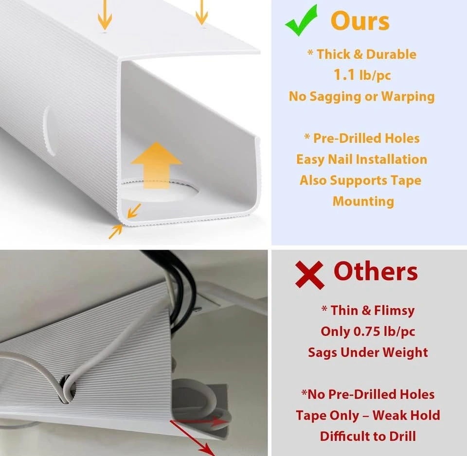 Durable and Sturdy Cable Hider: Made from quality solid PVC and upgraded to a thickness of 2.5mm. Once installed, it remains securely fixed, supporting various cables and equipment without bending, falling, or losing adhesion over time