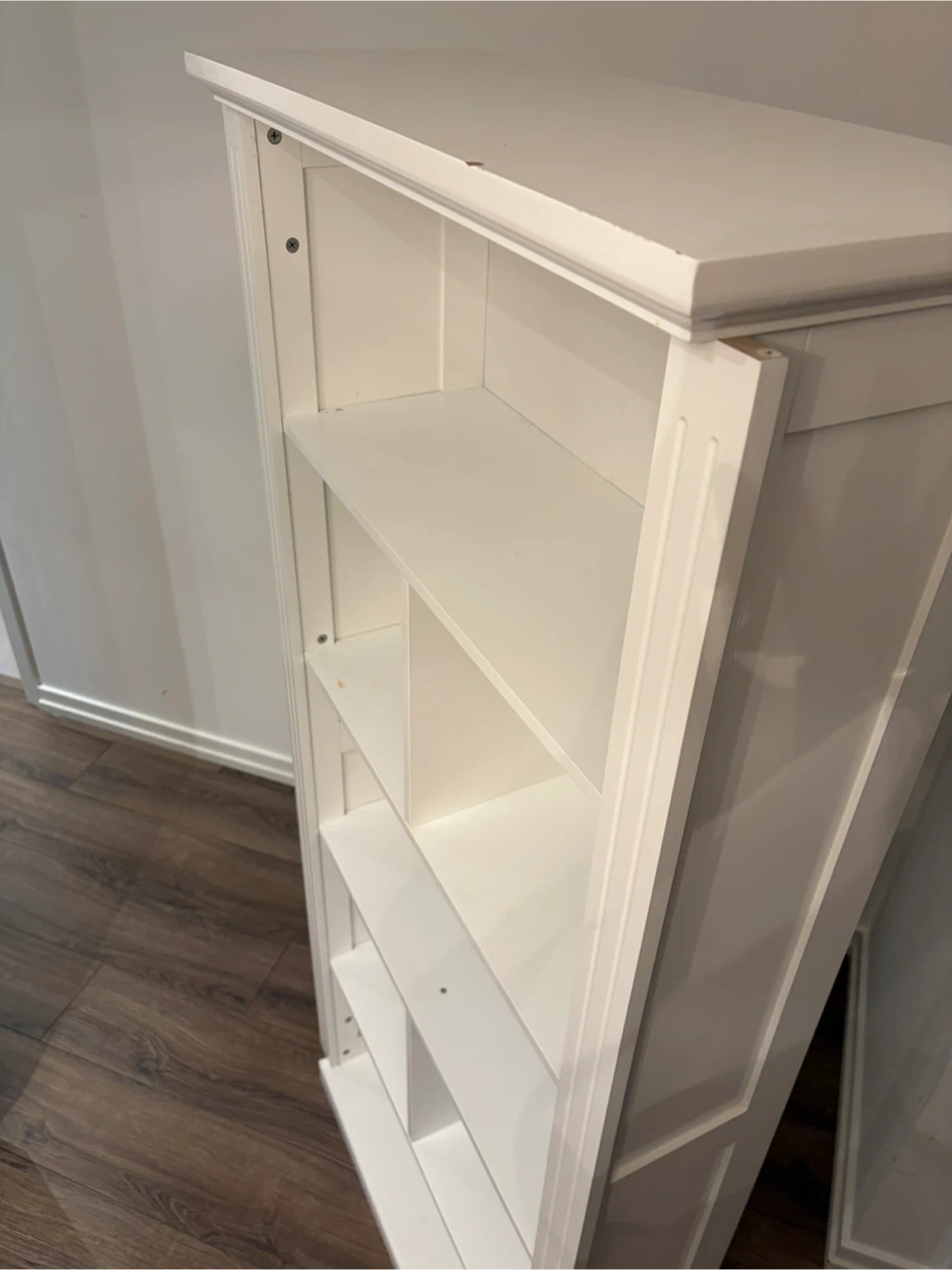 This white bookcase offers ample storage with its multiple shelves. It's a classic design that fits well in any room. Good for organizing books and decor!