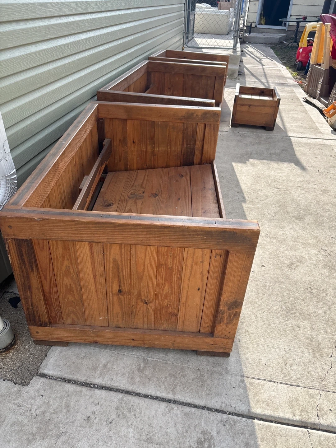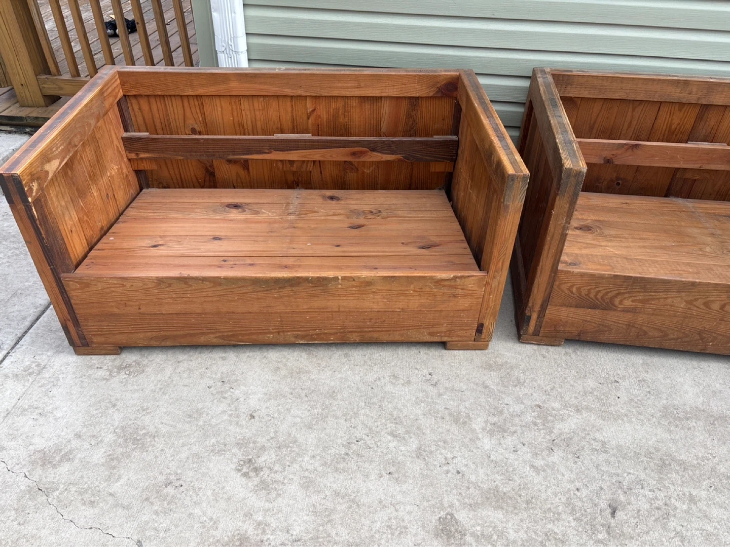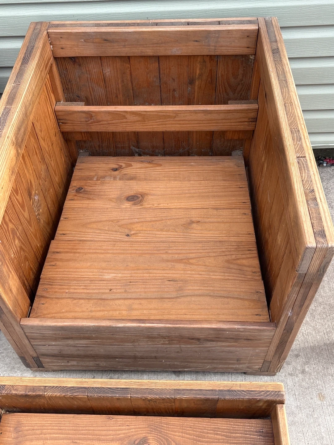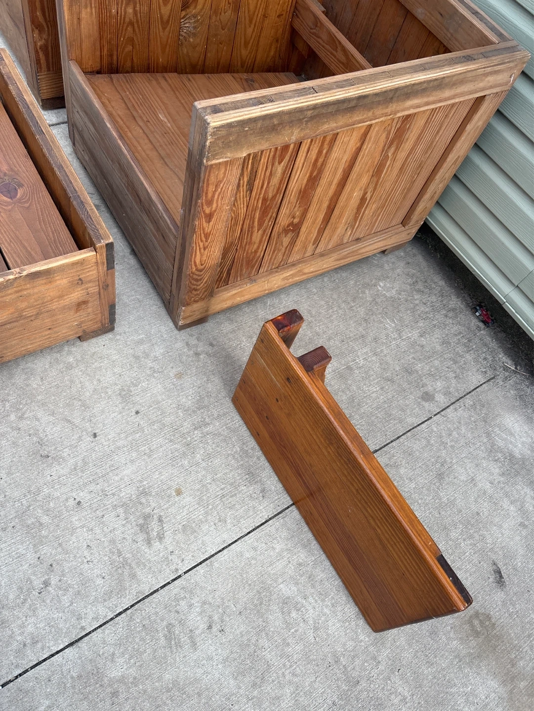 5 piece This end up solid wood furniture. 1 chair 1 ottoman and 2 loveseats and a eating table attachment . Garage pick up must take all. Great for a restore project no physical damage have been kept indoors
