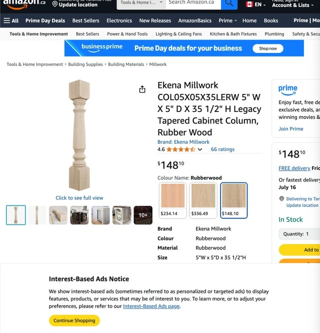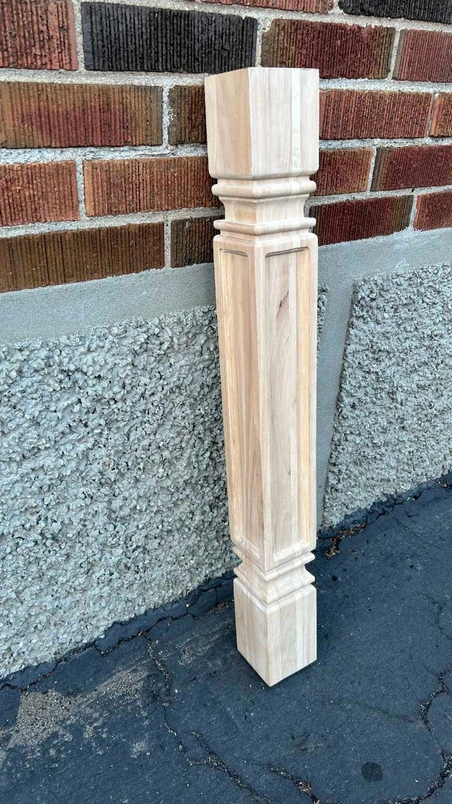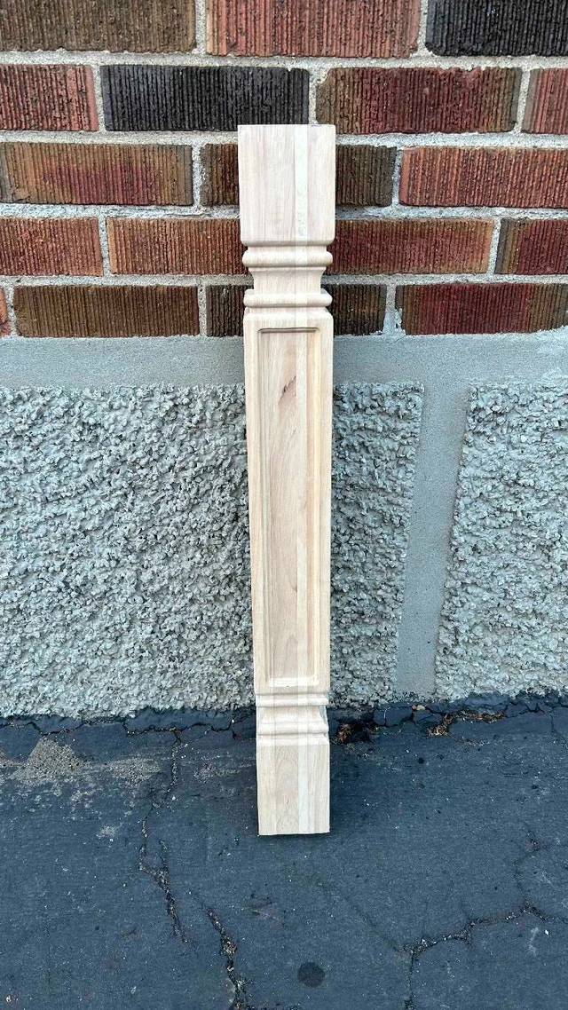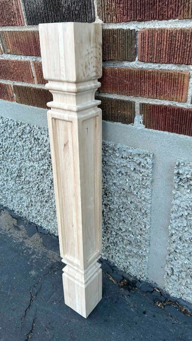 This raw natural wood cabinet leg post measures 5" W x 5" D x 35 1/2" H, perfect for adding a touch of elegance to your custom projects. This leg is made of rubberwood, which provides a sturdy and beautiful design element. This item is in used condition. Brand: Ekena Millwork. Colour: Rubberwood. Material: Rubberwood. Size: 5" W x 5" D x 35 1/2" H. If you're reading this, it's still available! Asking $40. Pick-up is Keele & Beechborough. CASH ONLY.