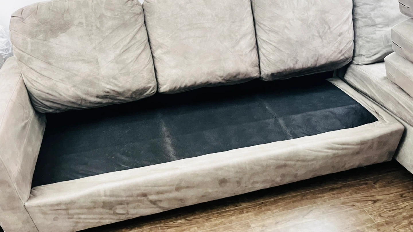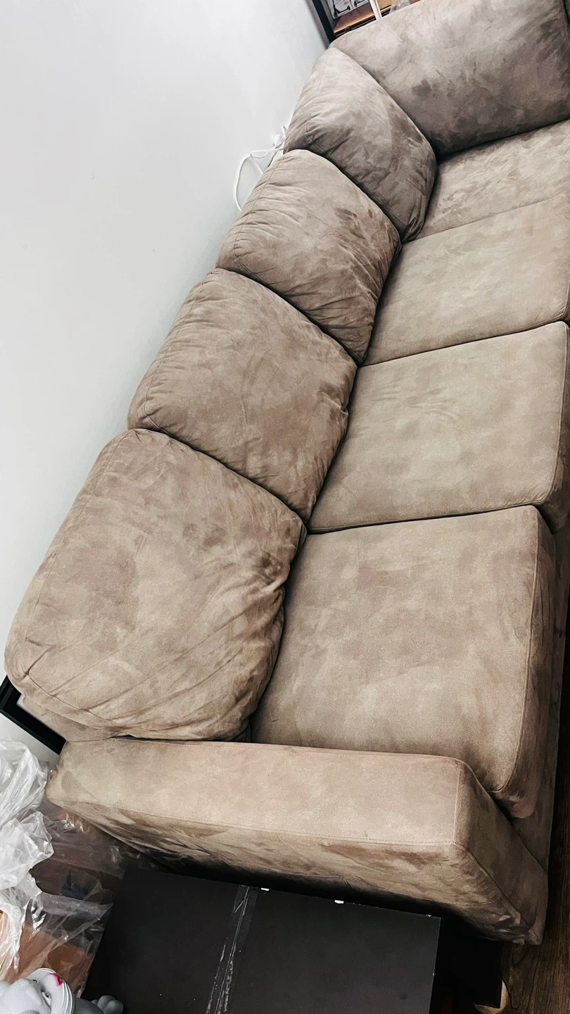 This sectional has been kept under protection sheets 24/7 to shield it from kids, dust, and daily life. The fabric underneath is pristine.