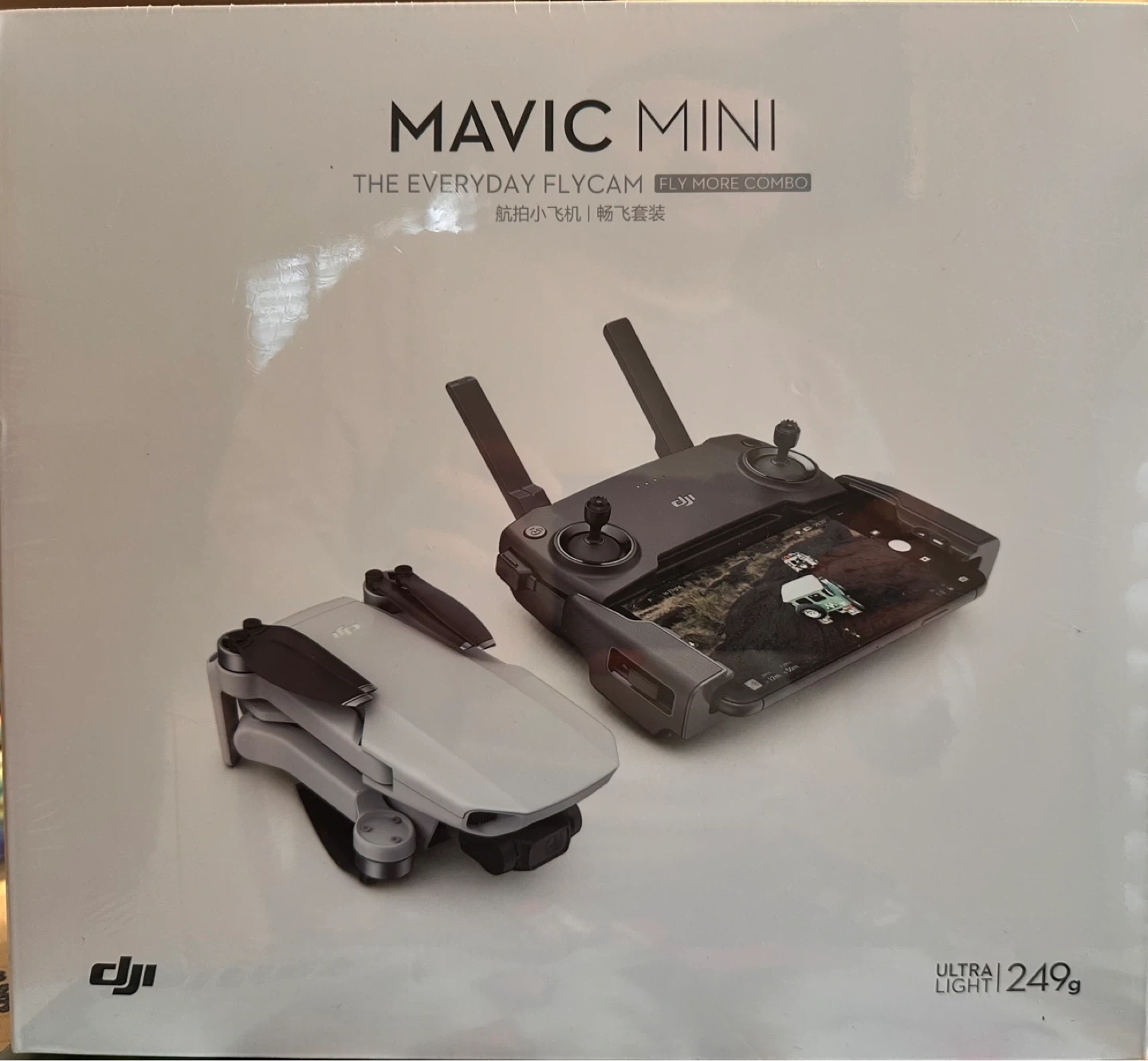 The DJI Mavic Mini is an ultra-light drone weighing just 249g. This Fly More Combo includes the drone, a remote controller, three batteries, and a carrying bag. It offers 30 minutes of flight time and 4 km HD video transmission.