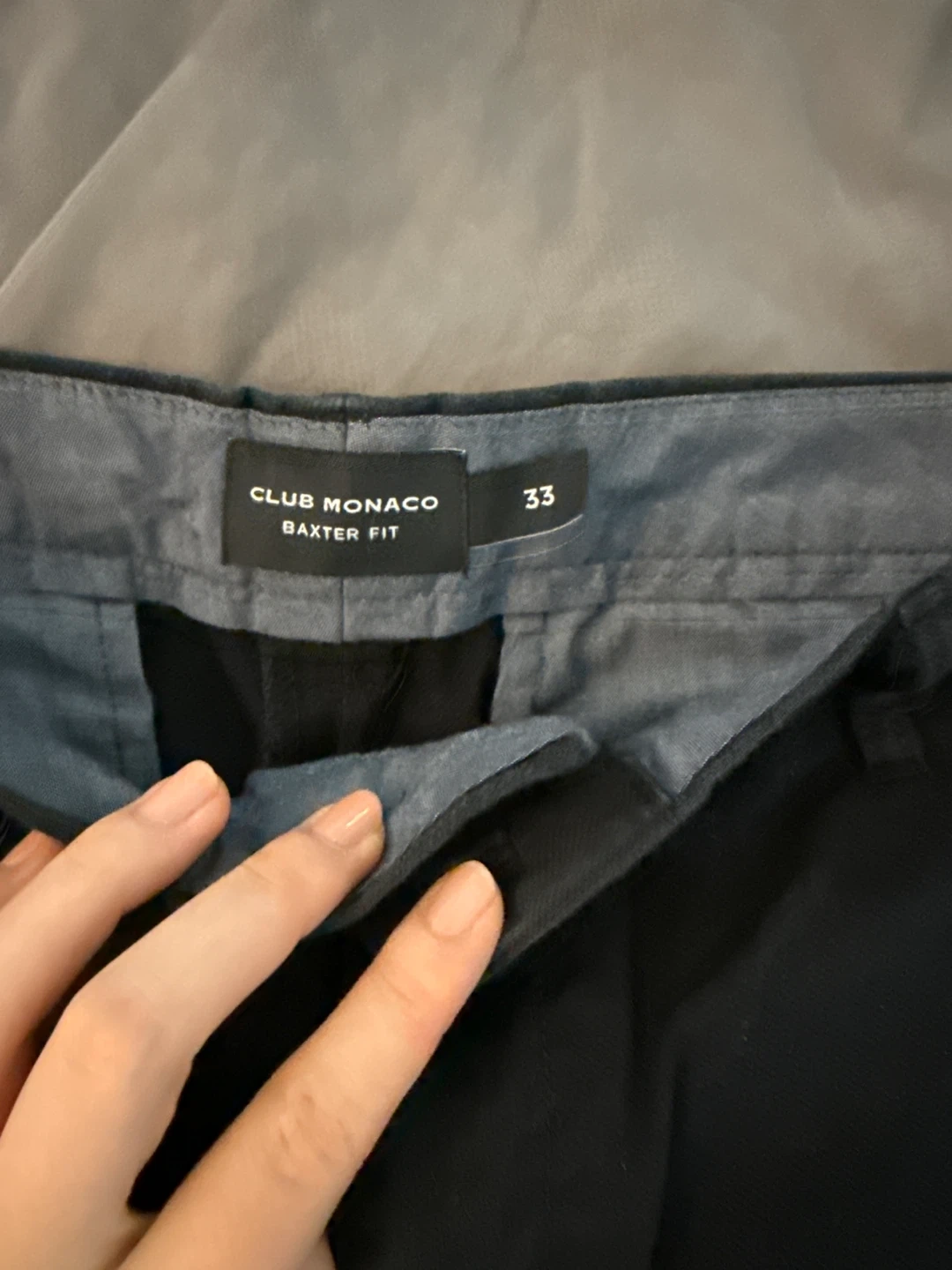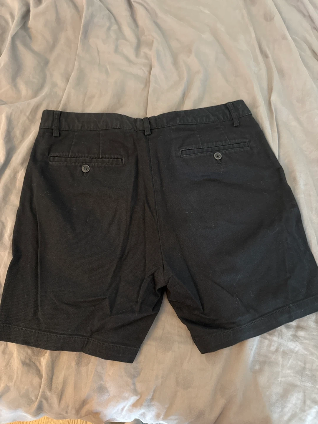 Club Monaco Baxter Fit shorts in black. These shorts are men size 33. They're a staple for warm weather! Cotton blend material.