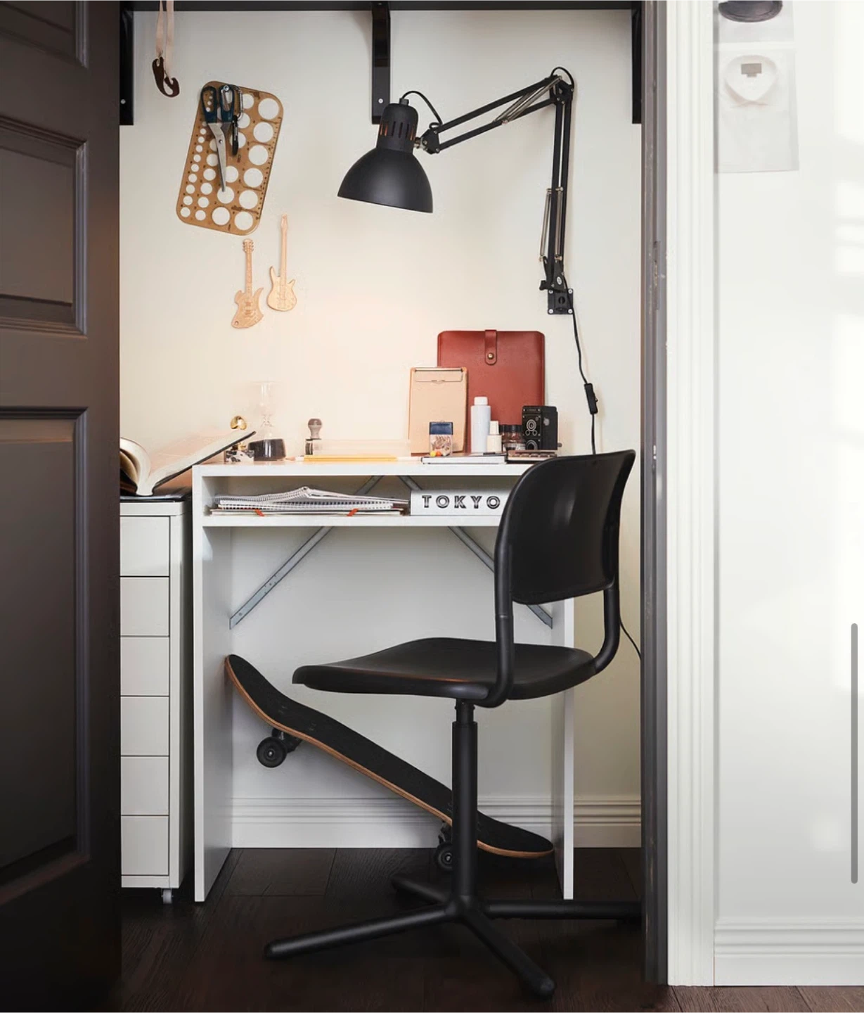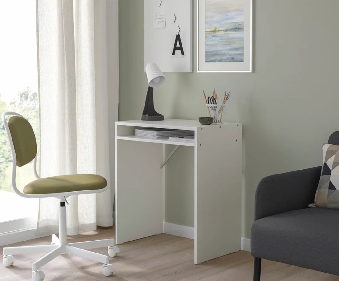 White Compact Desk with Shelf