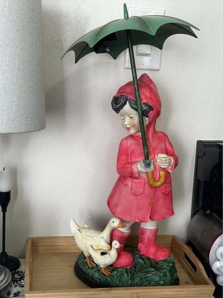 Cute Girl w Umbrella & Ducks Statue Light