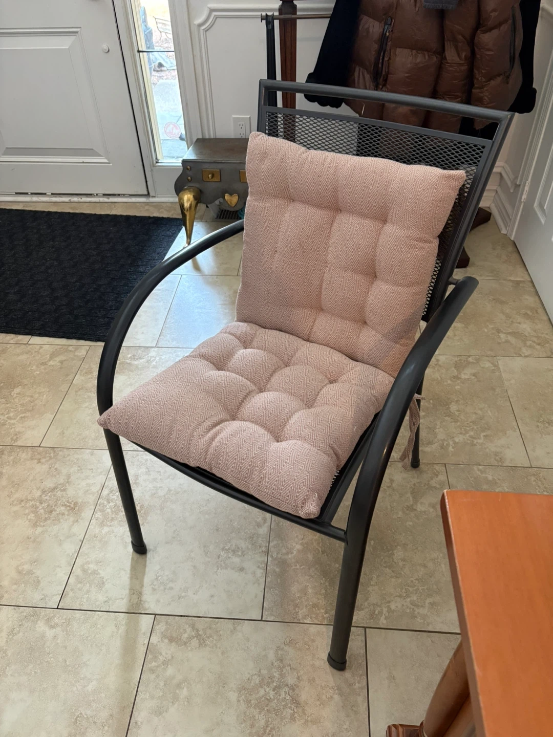 Black Metal Patio Chair with Pink Cushion