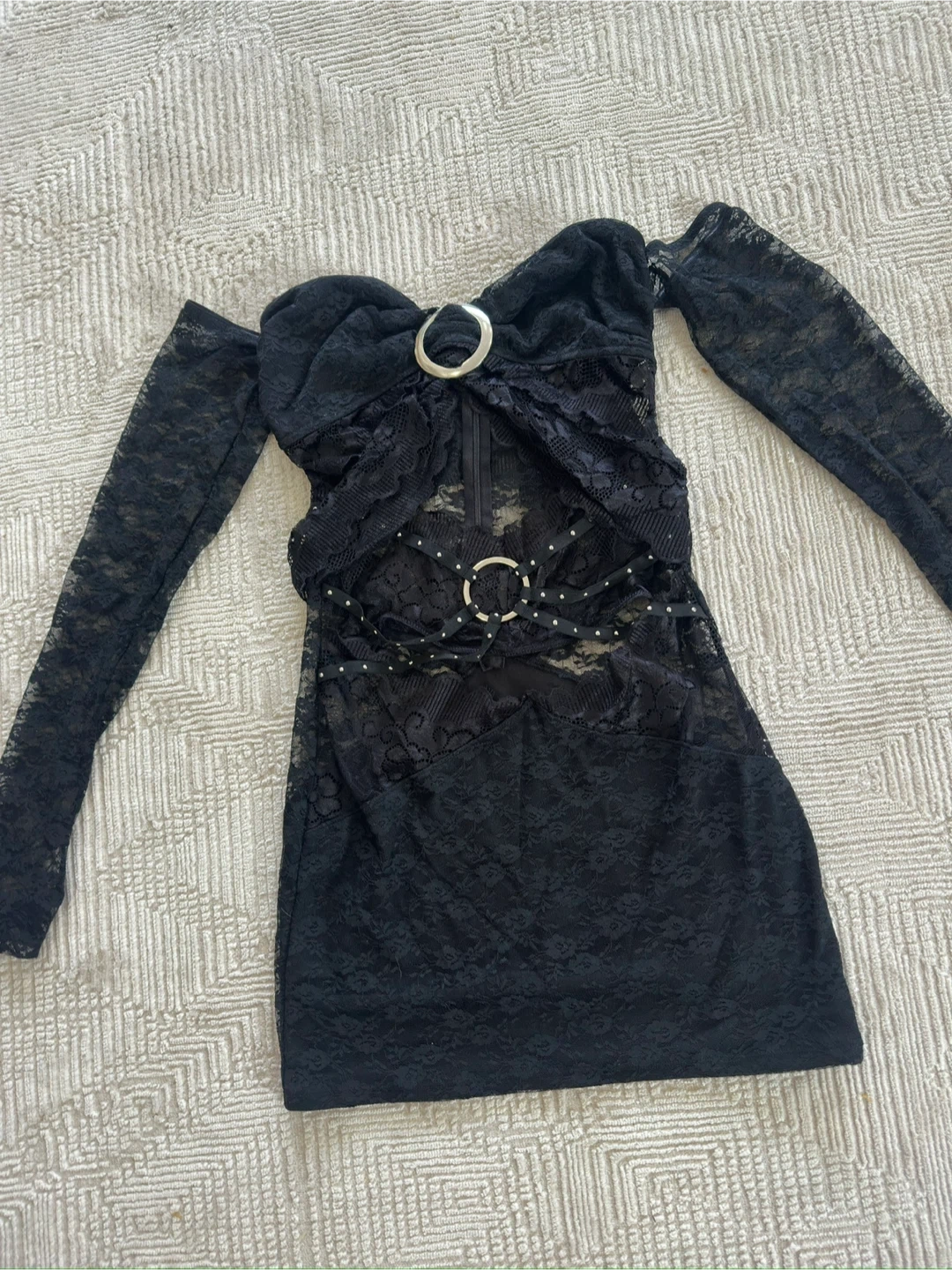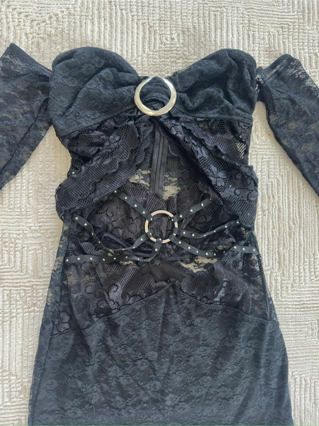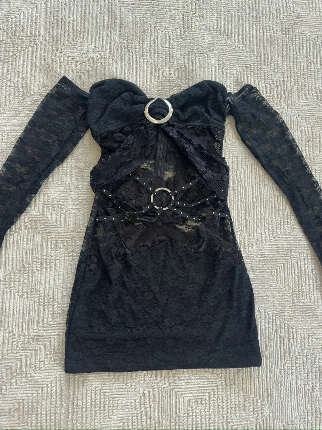 New Fashion Nova Black Lace Cut Out Mini Dress Size M