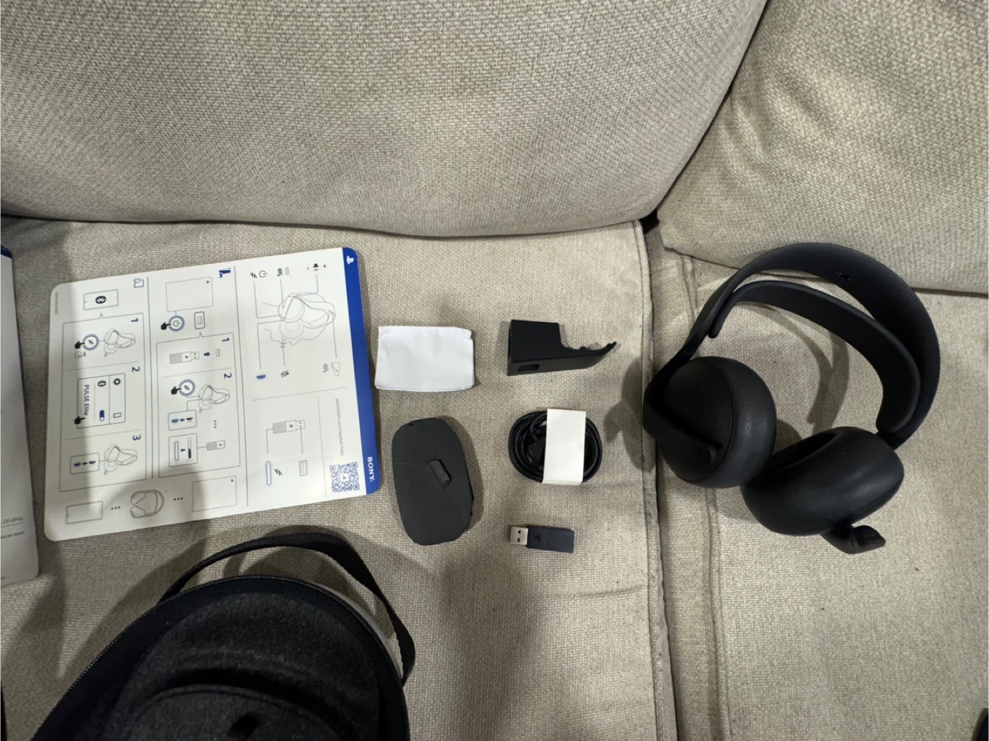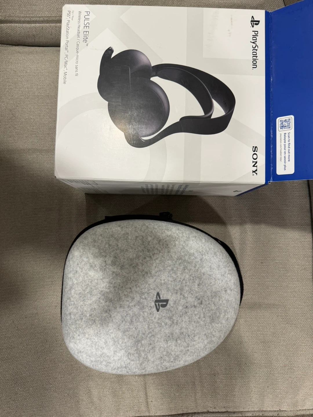 Brand new PlayStation PULSE Elite wireless headset in Midnight Black. It comes with the headset, charging stand, USB dongle, carrying case, and charging cable. Connects wirelessly for PS5, PC, Mac, and mobile devices.