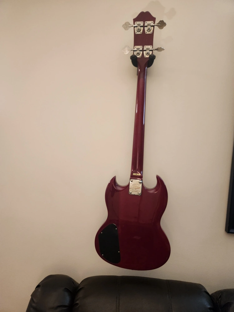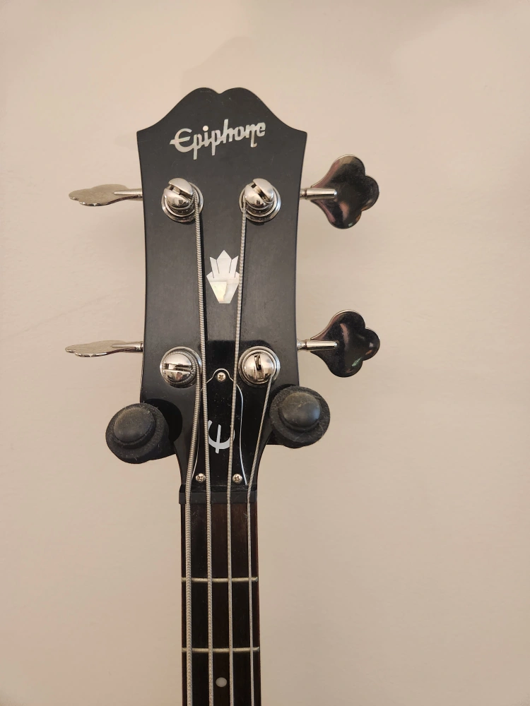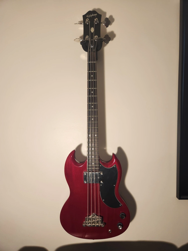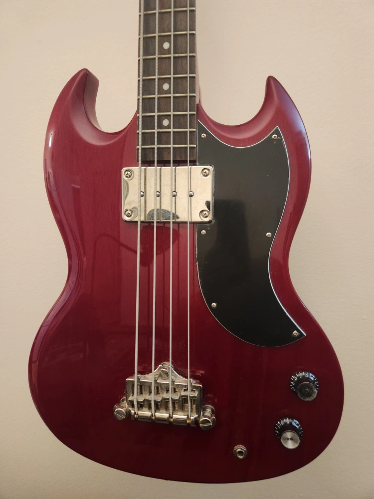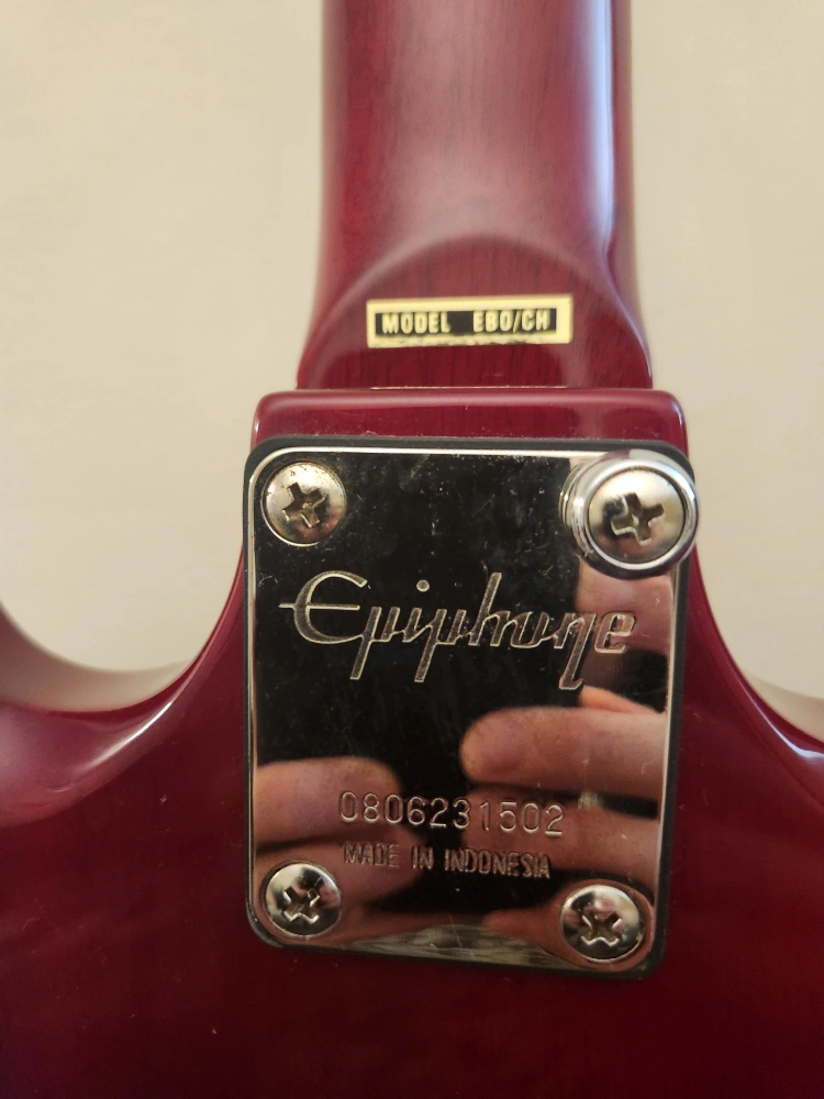 Selling an Epiphone EBO/CH bass guitar in a beautiful cherry red finish! This bass is in great shape and ready to play. Comes with soft case. Missing the silver thing off of the volume knob as shown in picture. Price Firm. Pick-up Only. Cash Only
