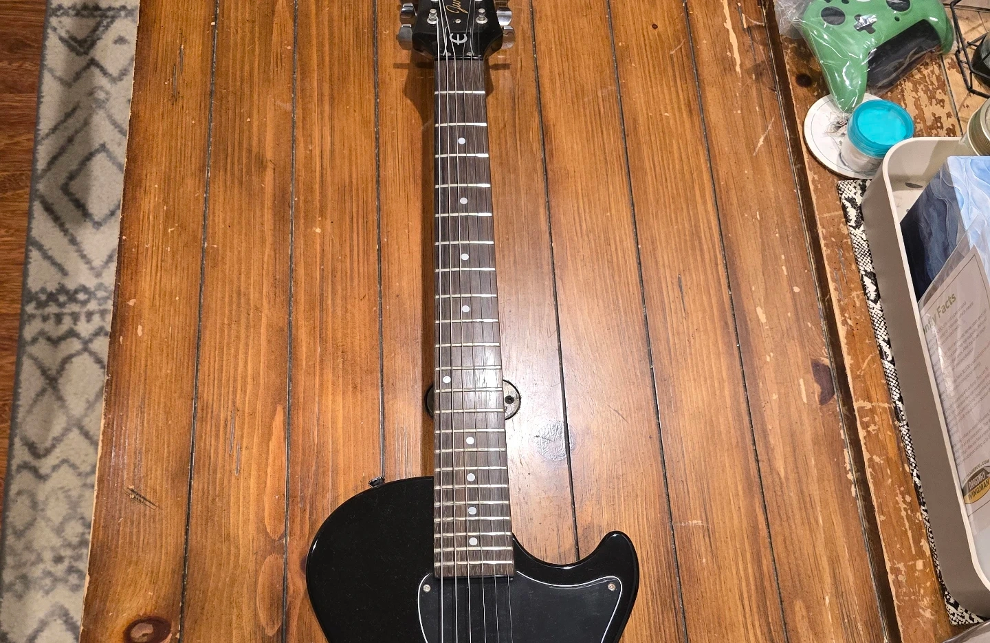 44Selling an Epiphone Junior Model electric guitar. It has a classic look and sound. There's a bit of damage on the headstock, as shown in the photos, but it doesn't affect the playability. A great guitar for beginners or anyone looking for a simple, reliable instrument. 150 OBO