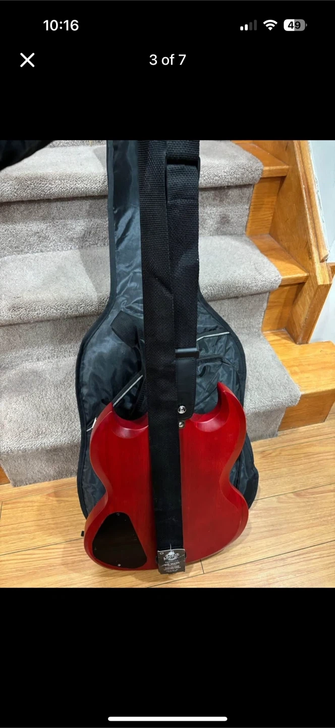 Selling an Epiphone SG guitar that's in great shape! It comes with a Ritter guitar case, perfect for keeping it safe and sound. The guitar is a beautiful red colour and ready for someone to play! Brand NEW Epiphone SG (Worn Cherry) Brand new with Bag Pick up Only!!! Classic SG style with five Vintage Worn color finishes Open Humbuckers with Ceramic Magnets Epiphone Premium Machine Heads Price NEGOTIABLE!!!!!