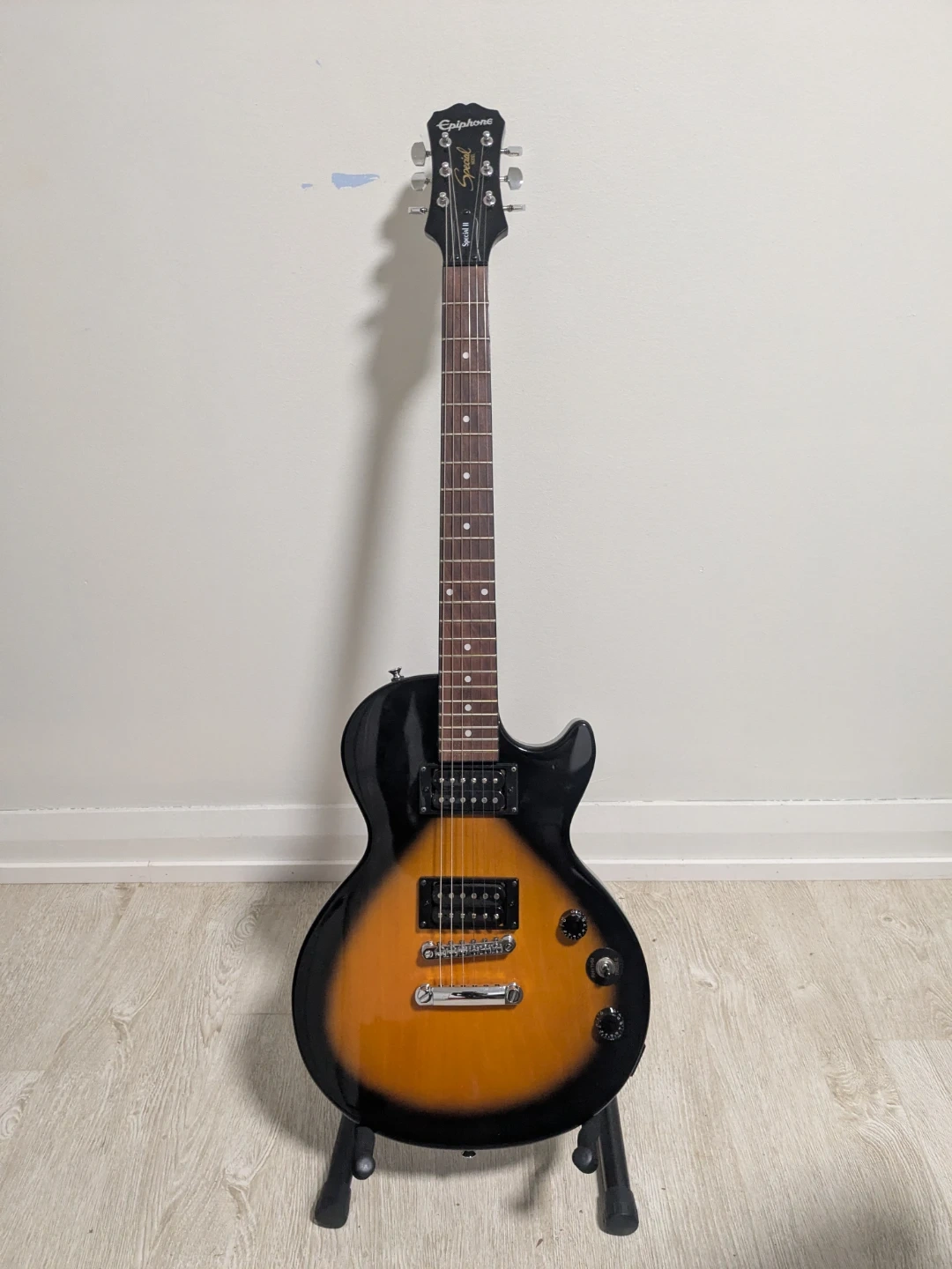 210Selling an Epiphone Special II electric guitar! It features a classic black and sunburst finish. Great for beginners or anyone looking for a reliable instrument to play. Get ready to make some music!