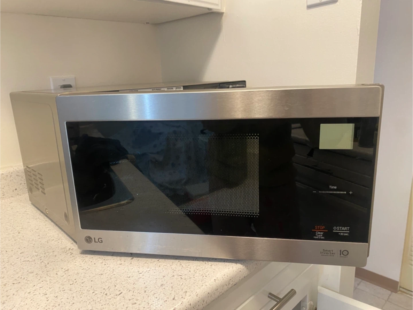 This is a countertop LG microwave with a stainless steel finish. It features Smart Inverter technology. Measures 20.6" W x 11.7" H x 16.2" D. pick up only!