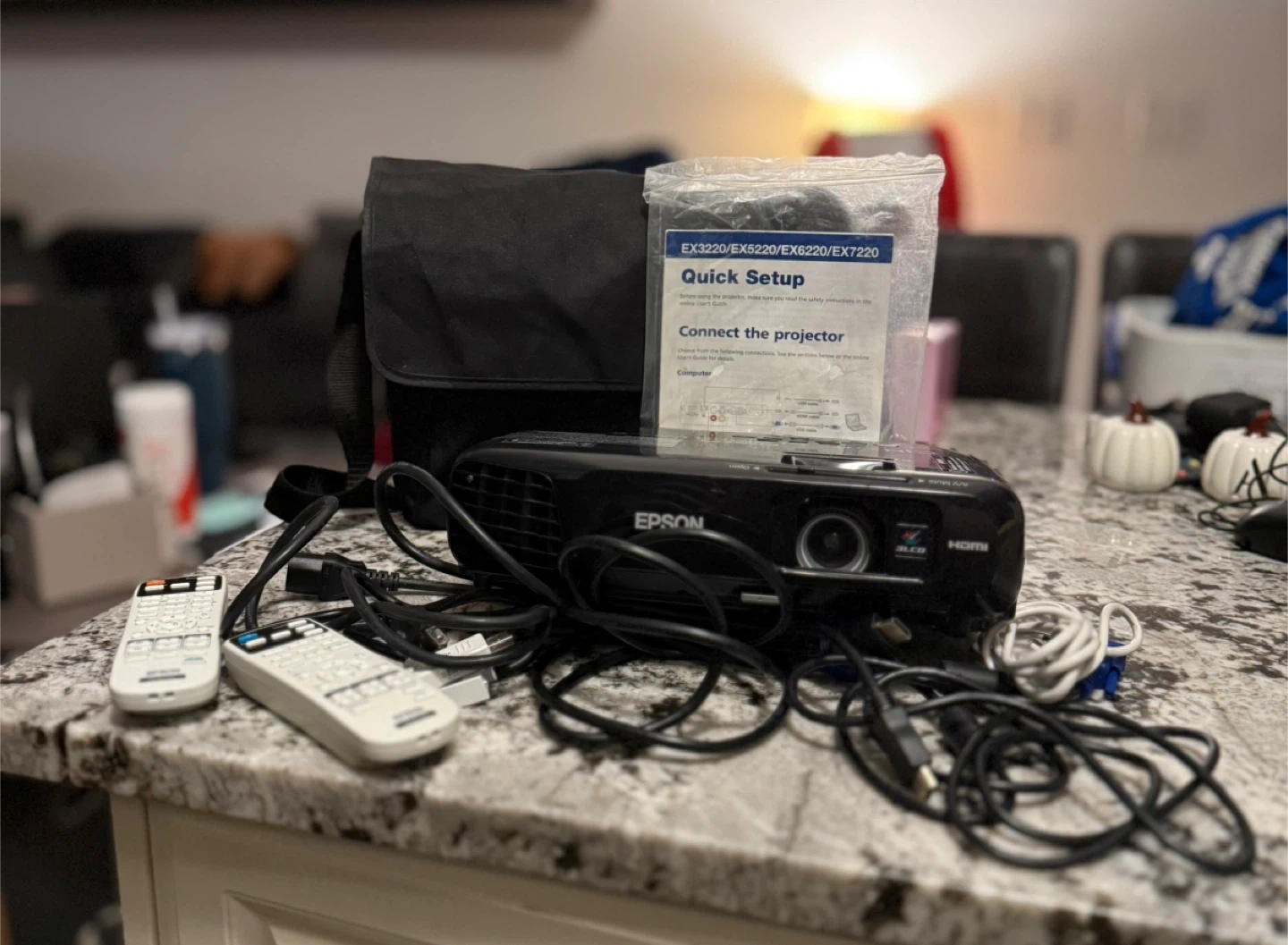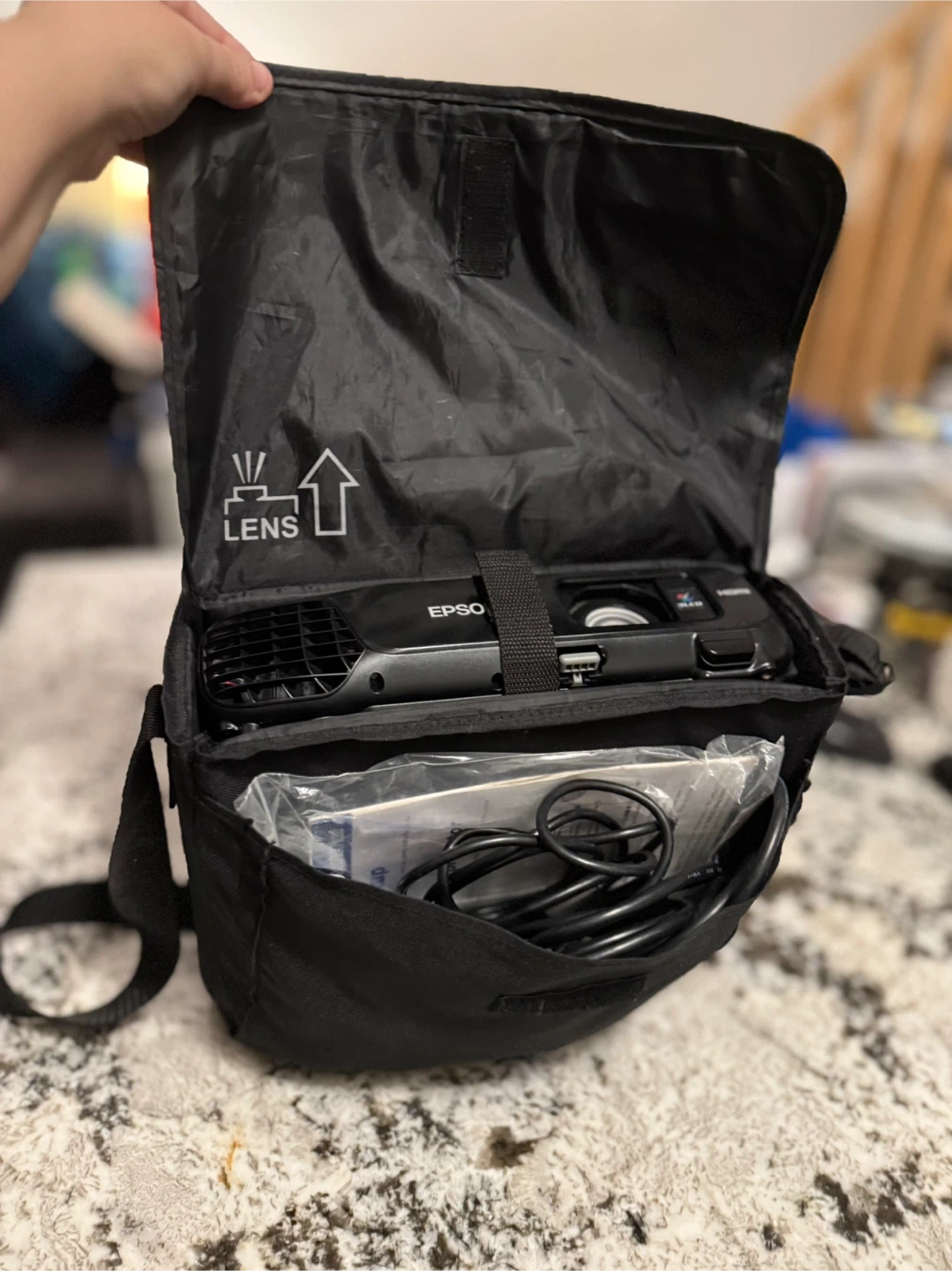 40Reliable Epson 3LCD projector (WXGA 1280x800, 3000 lumens) — perfect for home, office, or classroom use. Works great; last used three years ago with HDMI, VGA, and USB connections. Includes: • Power cable • HDMI cable • VGA cable • USB-A to USB-B cable • Epson Wireless LAN USB module (for wireless projection, untested) • Carrying case • Quick setup guide • Two Epson remotes (one functional) Original lamp still installed; picture quality was excellent when last used. Clean overall, with minor surface wear and silver Sharpie name on top (cosmetic only; I covered it in the photos). Pickup near Dufferin & Wilson (close to Yorkdale Mall). Cash only.