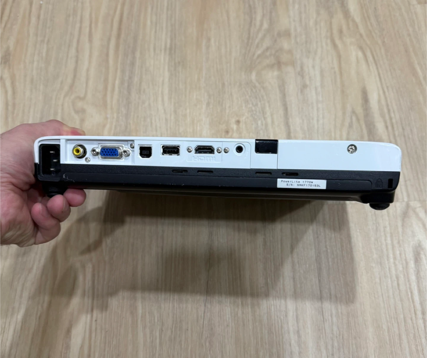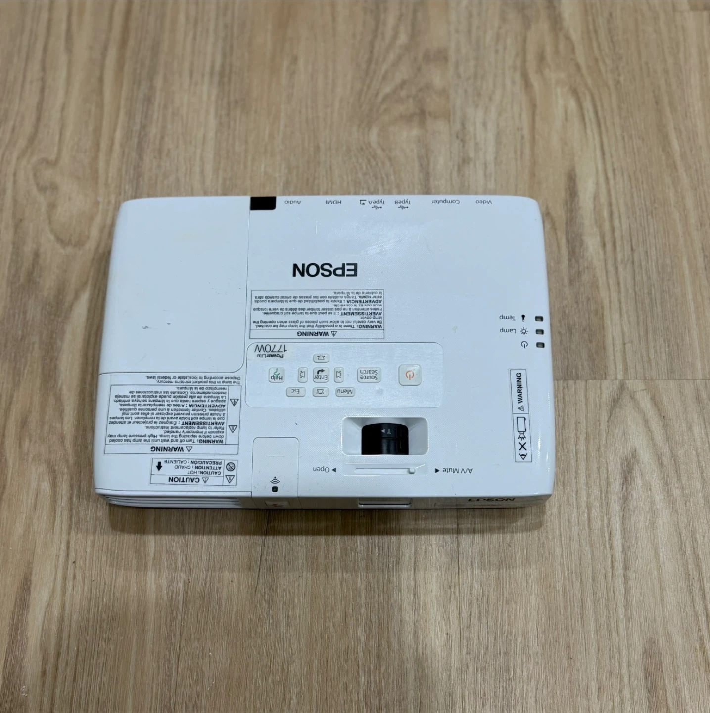 In good condition Epson PowerLite 1770W Portable Projector hardly used. The Epson PowerLite 1770W is a portable projector with a native WXGA (\(1280\times 800\)) resolution, 3000 ANSI lumens of brightness, and a \(2000:1\) contrast ratio. It weighs 3.7 lbs, measures about 11.5" x 8.3" x 1.7", and supports various inputs including HDMI and USB for PC-free presentations. Key specifications Brightness: 3000 ANSI lumensNative Resolution: WXGA (\(1280\times 800\))Aspect Ratio: 16:10Contrast Ratio: \(2000:1\)Technology: 3LCD, 3-chipWeight: 3.7 lbsDimensions: 11.5" x 8.3" x 1.7" (W x D x H) (excluding feet)Lamp: 205W UHEZoom: 1.2x optical zoom Connectivity and features Inputs: HDMI, USB Type A, RGB (D-Sub 15-pin)Wireless: Capable with an optional wireless LAN cardPC-free presentations: Yes, via USB storage deviceSpeaker: Built-in 1W mono speakerFan Noise: 30 dB (low brightness) to 40 dB (medium brightness)  Comes with bag.