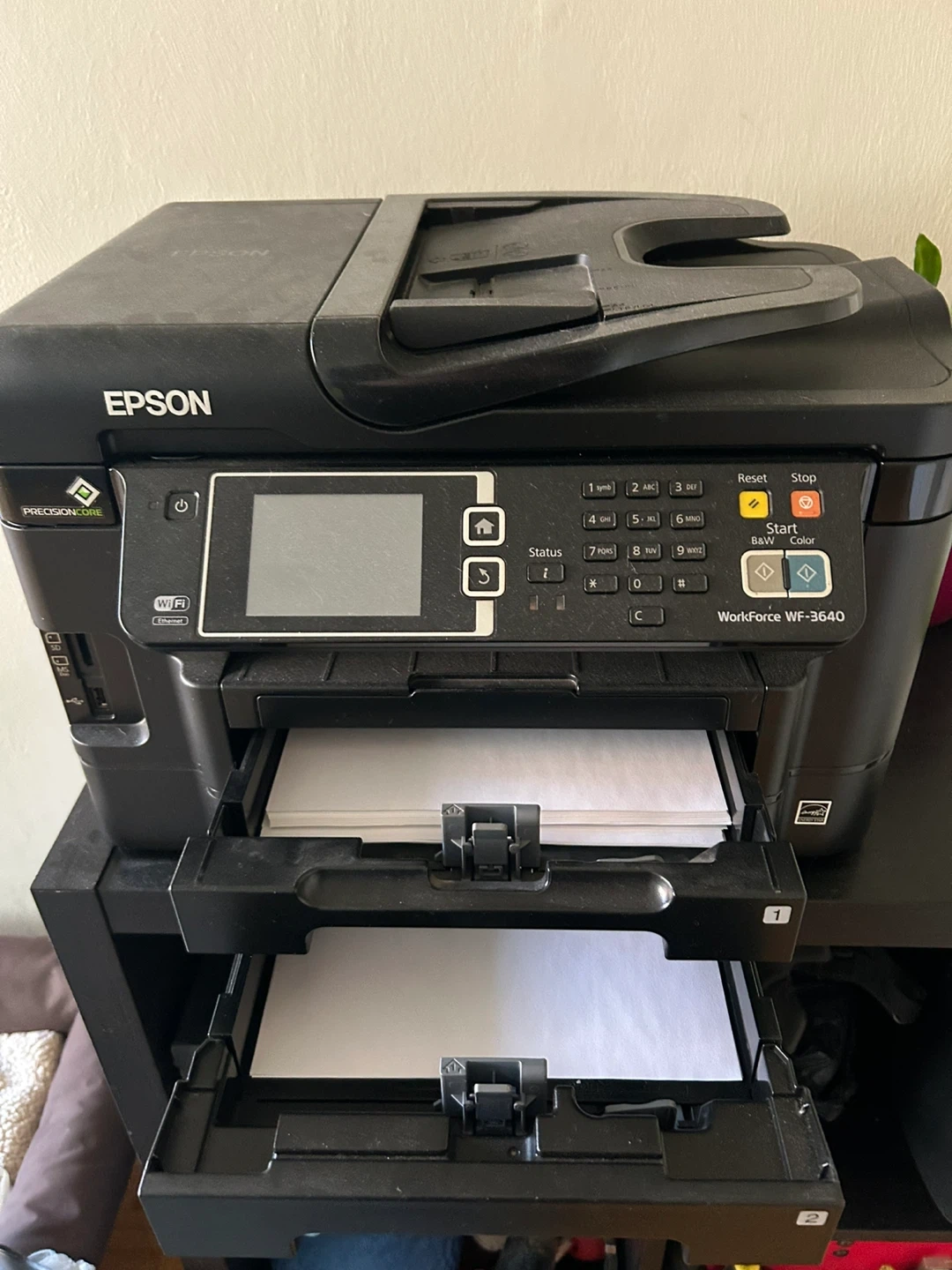 199Selling an Epson Workforce WF-3640 All-in-one printer, scanner, copier and fax machine. It's in good working condition and ready for a new home. Great for home or small office use! It has a colour display and a variety of functions.