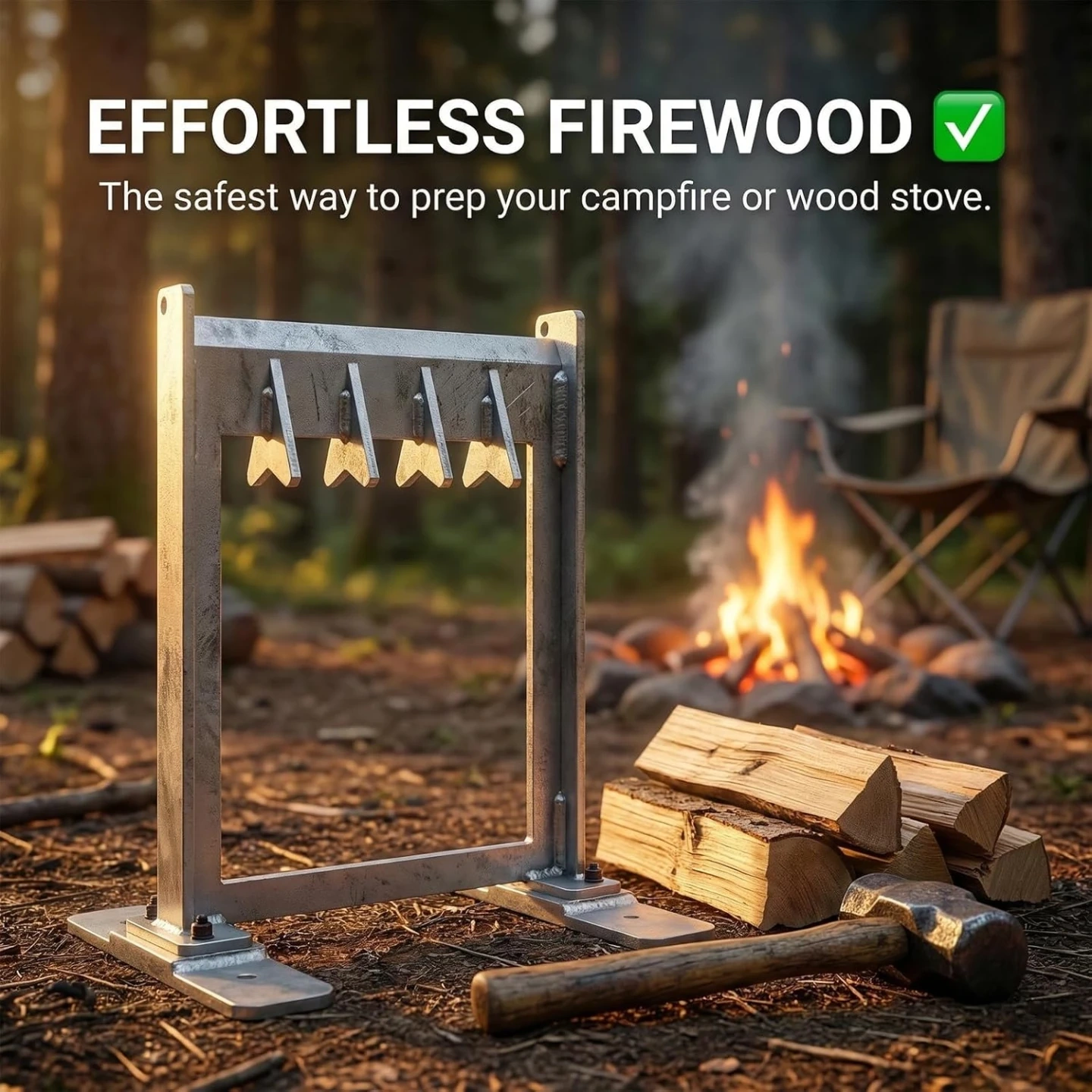 【✅ & 】Engineered to maximize force, our CNC milled, heat-treated straight blade features 4 integrated slanted fins that pop logs apart instantly. This razor-sharp geometry bites into wood with far less effort than dull cast wedges, transforming a tough chore into a simple task that requires less strength, making it accessible for the whole family.