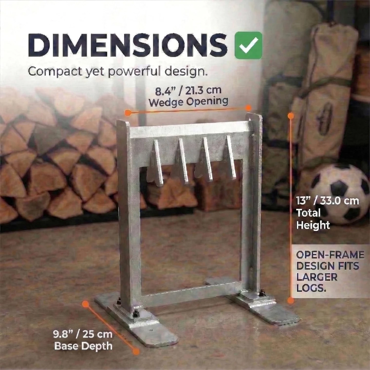 【✅ & ] With an assembled size of ." ." " (.) and an .4- , this model is the ideal balance of power and portability. It is compact enough to stow in an RV or sit by a small wood stove, yet the wide opening handles standard logs with ease. Setup is tool-free and fast with two bolt-on stability plates included.