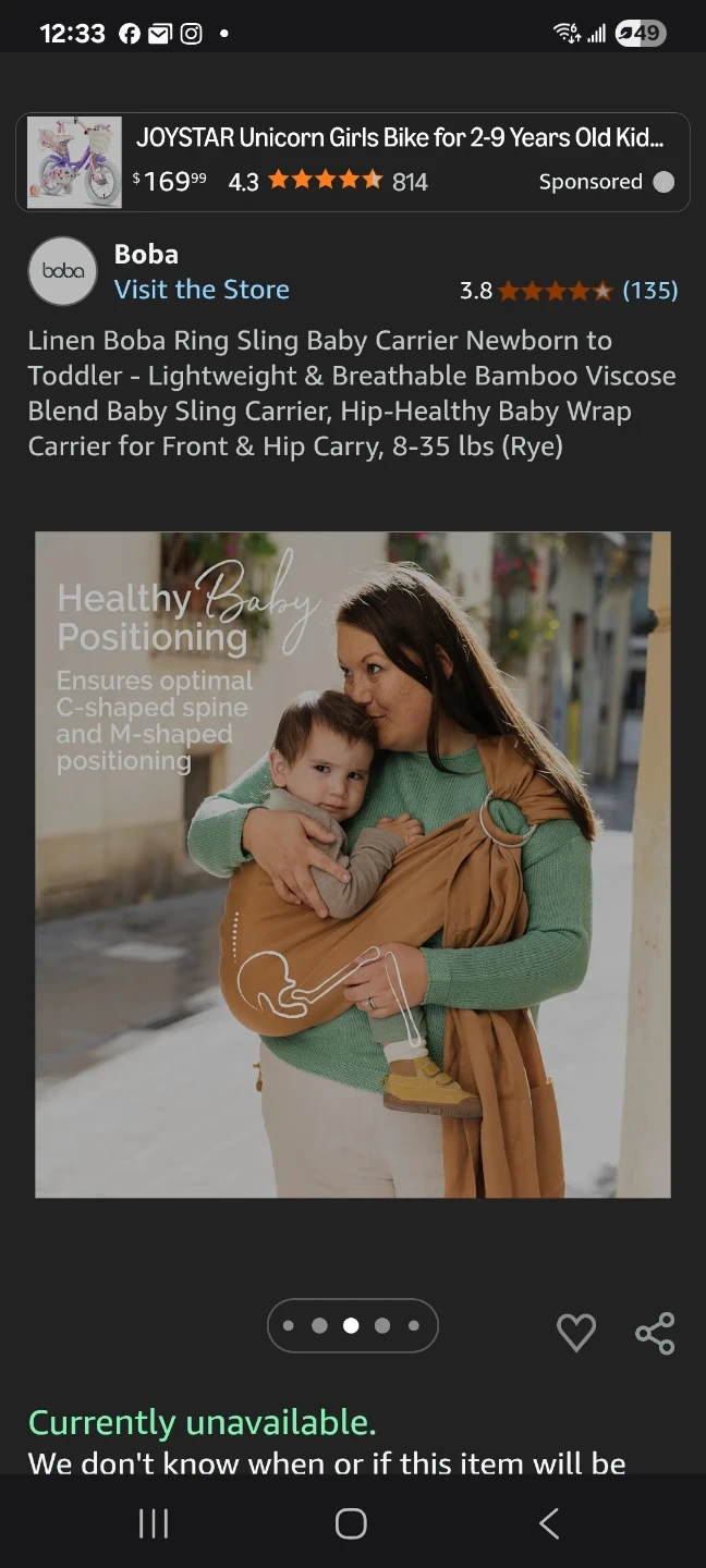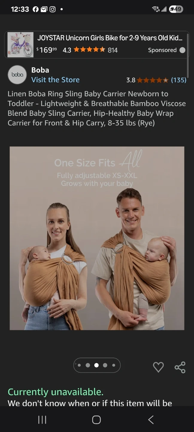 Boba Ring Sling Baby Carrier Newborn to Toddler "π"brand new