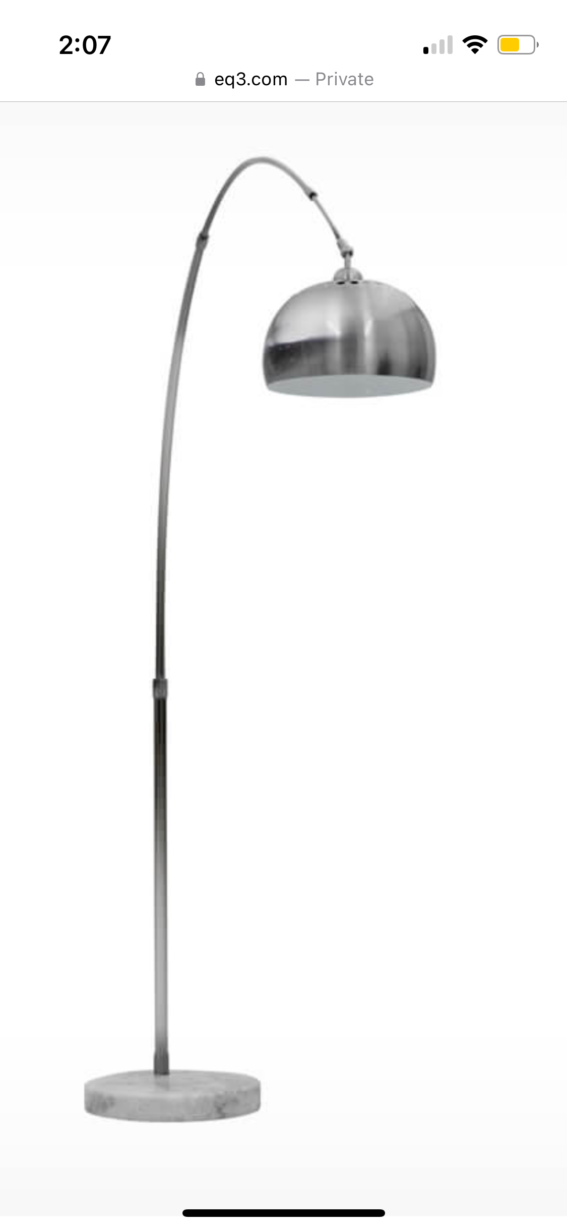52Floor lamp featuring a solid marble base, and metal shade and stem. Requires 100W – E26 bulb (not include) Shade can swivel Telescope arm is retractable It is assembled, but can be disassembled for transport 83" cord Current price for a new one is $350