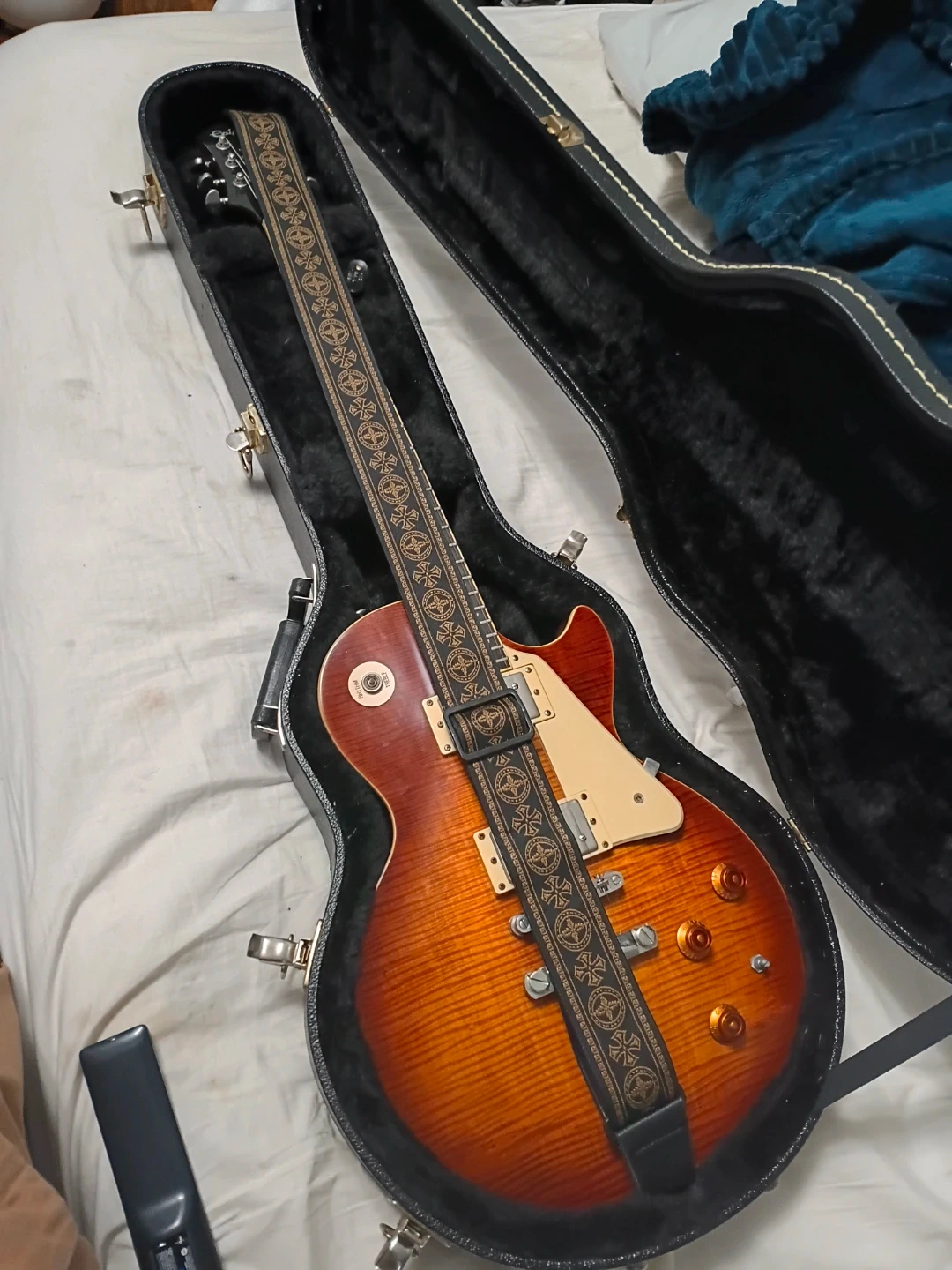Up for sale is an Epiphone Les Paul Standard Pro electric guitar, complete with its original hard case. It's also bundled with a Fender Mustang I amplifier. This is a great starter pack for any aspiring musician!